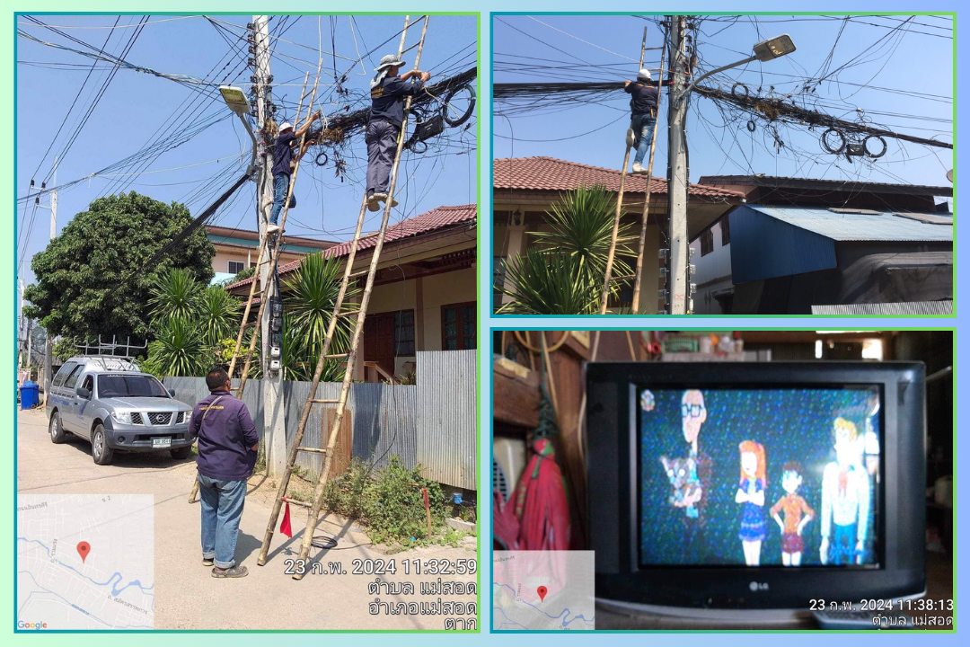 ลงพื้นที่ดำเนินการซ่อมแซมเคเบิ้ลทีวีเพื่อการศึกษา ตามคำร้องขอ ในพื้นที่ชุมชนร่วมแรง เพื่อให้ประชาชนชุมชนดังกล่าวสามารถรับบริการเคเบิ้ลทีวีเพื่อการศึกษาได้ตามปกติ