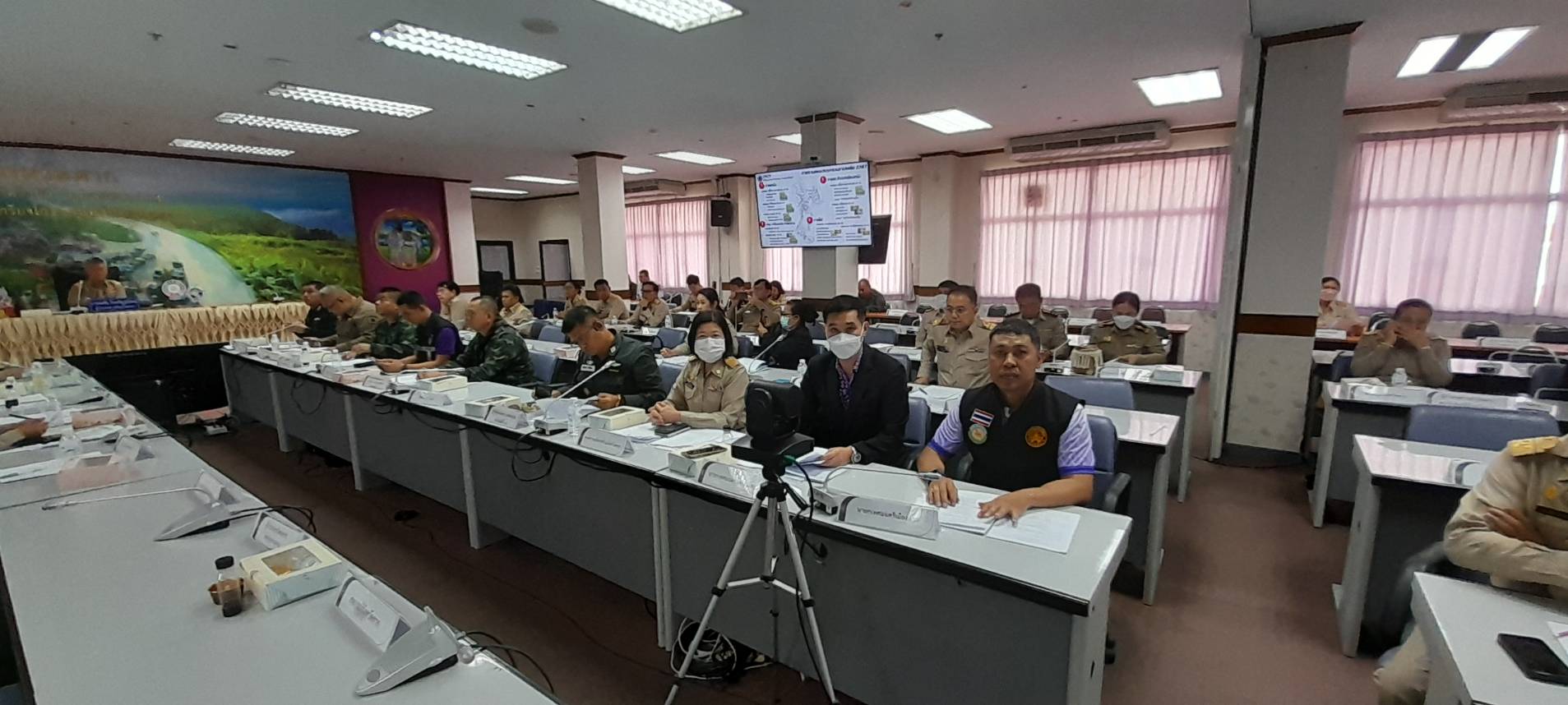 ว่าที่ร้อยตรีประเสริฐ ปวงละคร นายกเทศมนตรีนครแม่สอด มอบหมายให้ นายขวัญชัย พะยอม หัวหน้าฝ่ายวิเทศสัมพันธ์ และ นายเสกสรร ศรีรมย์ นักจัดการงานทั่วไปชำนาญการ เข้าร่วมประชุมคณะกรมการจังหวัดตาก ฯ ประจำเดือนมีนาคม 2567 ครั้งที่ 3/2567 จากนั้นเวลา 10.30 น. เข้าร่วมการประชุมคณะกรรมการศูนย์อำนวยการป้องกันและปราบปรามยาเสพติดจังหวัดตาก ฯ และเวลา 11.00 น. การประชุมคณะกรรมการรักษาความมั่นคง ฯ จังหวัดตาก และเวลา 13.30 น. เข้าร่วมการประชุมหัวหน้าส่วนราชการ หัวหน้าหน่วยงานรัฐวิสาหกิจ สังกัดกระทรวงมหาดไทย นายอำเภอและผู้ที่เกี่ยวข้อง ฯ โดยมีนายสมชัย กิจเจริญรุ่งโรจน์ ผู้ว่าราชการจังหวัดตาก เป็นประธานการประชุม ฯ