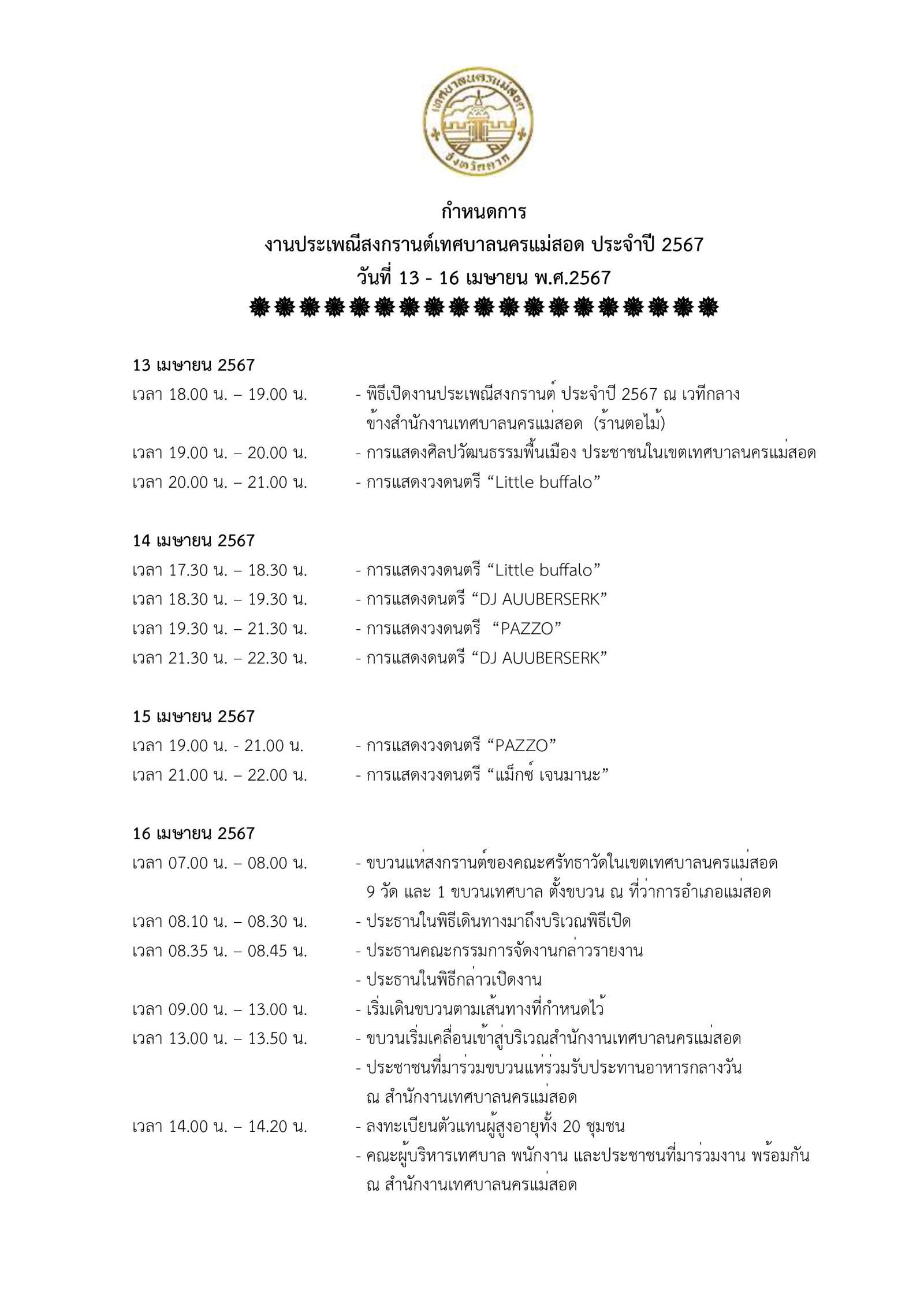 เจ้าหน้าที่ฝ่ายวิเทศสัมพันธ์กองยุทธศาสตร์และงบประมาณ ดำเนินการประชาสัมพันธ์เชิญชวนร่วมงานสงกรานต์ “เย็นทั่วหล้ามหาสงกรานต์เทศบาลนครแม่สอด”