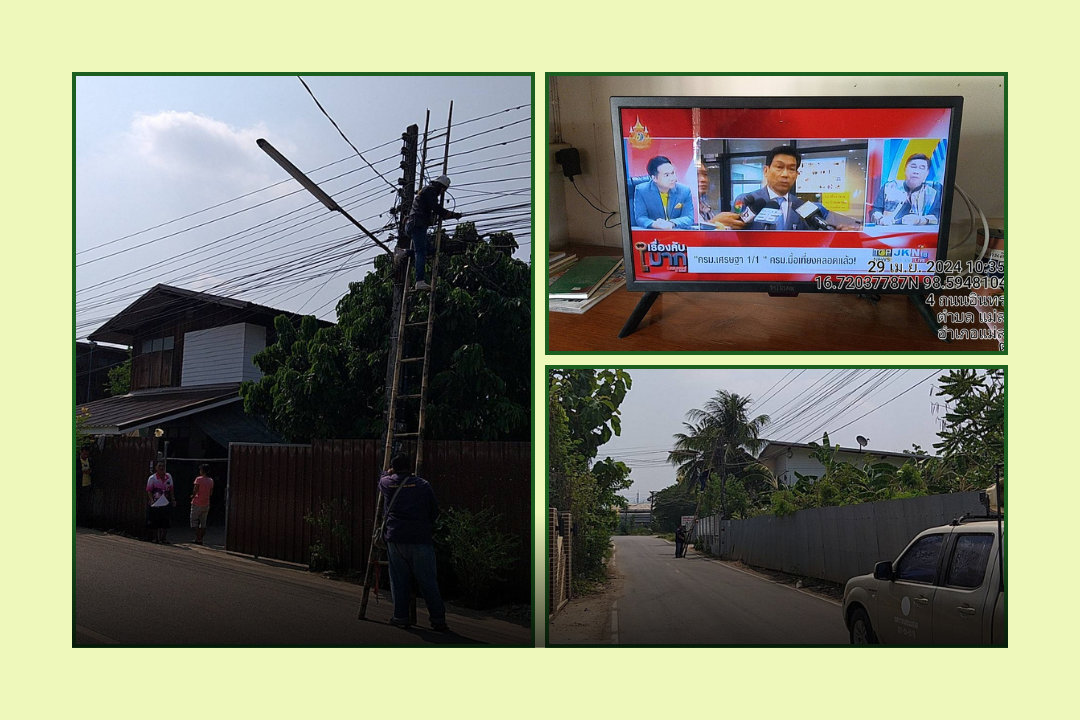 ลงพื้นที่ดำเนินการซ่อมแซมเคเบิ้ลทีวีเพื่อการศึกษา ตามคำร้องขอ ในพื้นที่ชุมชนบ้านเหนือสามัคคี เพื่อให้ประชาชนชุมชนดังกล่าวสามารถรับบริการเคเบิ้ลทีวีเพื่อการศึกษาได้ตามปกติ