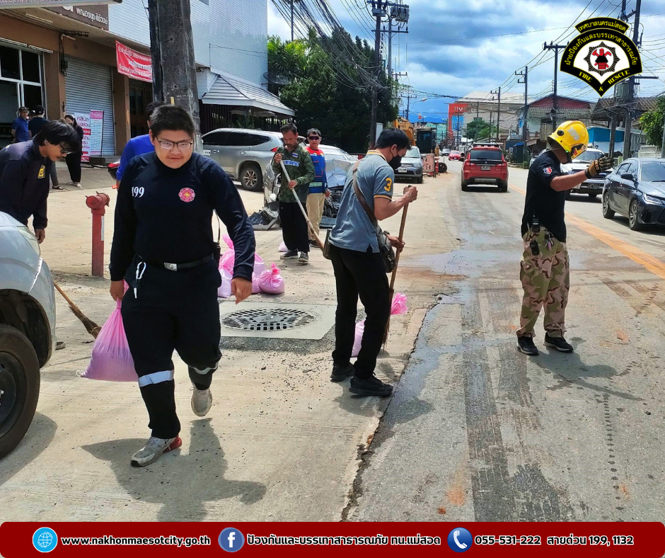 ต่อมาเวลาประมาณ 10.40 น. เจ้าหน้าที่ดับเพลิงนครแม่สอด ได้ออกดำเนินการนำทรายหยาบกลบคราบน้ำมัน ทำความสะอาดพื้นผิวถนนการจราจร เพื่อป้องกันการเกิดอุบัติเหตุซ้ำซ้อนขึ้น ดำเนินการจนแล้วเสร็จ