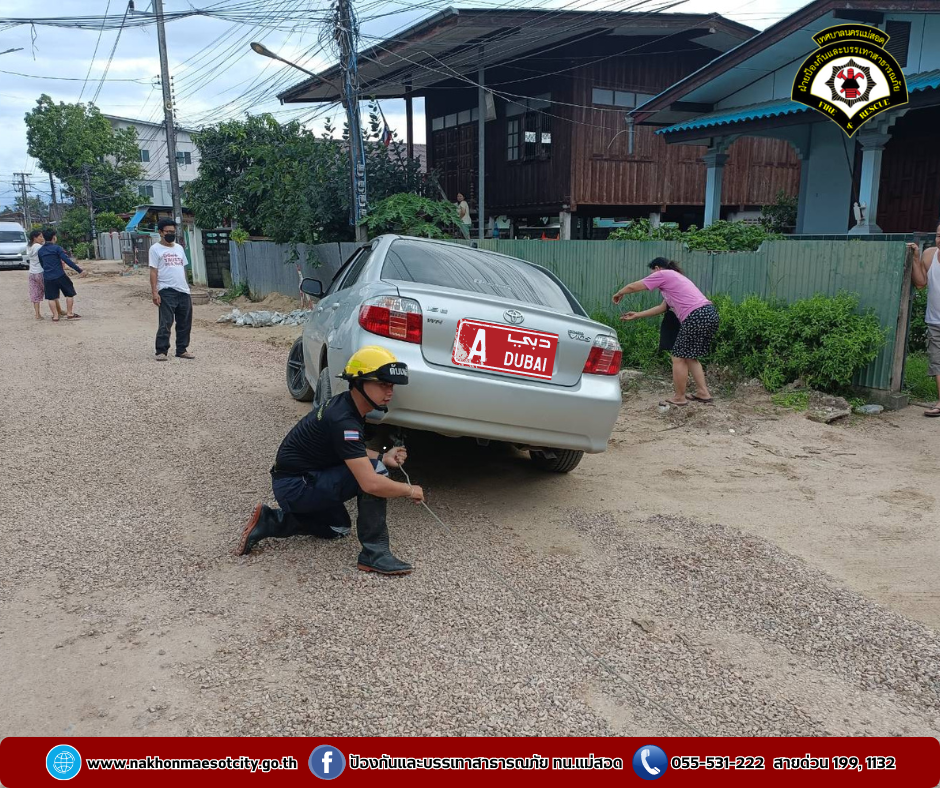ดับเพลิงนครแม่สอด จึงนำรถยนต์กู้ภัยเคลื่อนที่เร็ว ออกดำเนินการตรวจสอบ ณ ที่เกิดเหตุ เมื่อไปถึงที่เกิดเหตุพบรถยนต์เก๋งจอดล้อตกข้างทาง ท้ายรถล้อลอยรอการช่วยเหลือ เจ้าหน้าที่จึงได้ทำการช่วยเหลือโดยการใช้วินซ์จากรถยนต์กู้ภัยดึงรถยนต์เก๋งคันดังกล่าว จนดำเนินการเเล้วเสร็จ