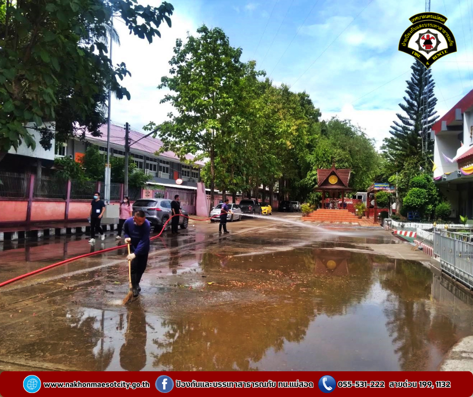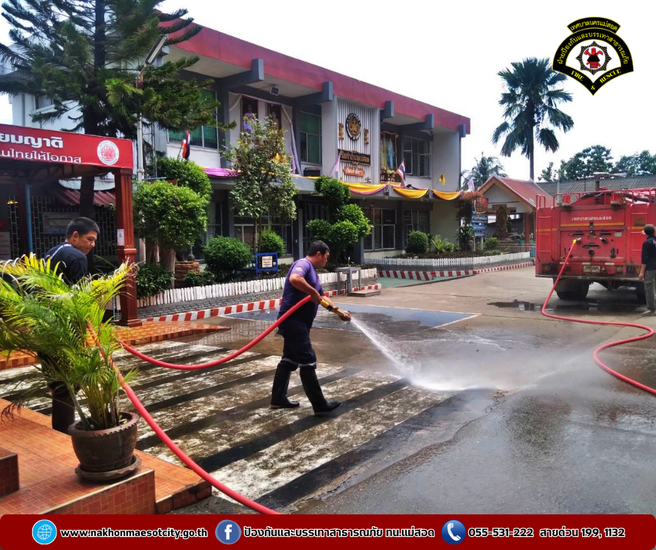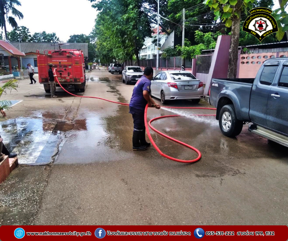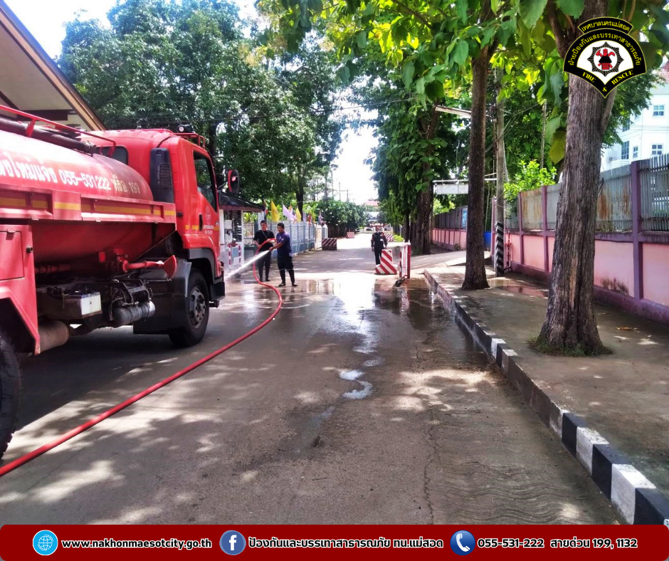 วันพฤหัสบดีที่ 4 กรกฎาคม 2567 เวลา 13.30 น. ว่าที่ร้อยตรี ประเสริฐ ปวงละคร นายกเทศมนตรีนครแม่สอด มอบหมายให้เจ้าหน้าที่ดับเพลิงนครแม่สอด นำรถยนต์บรรทุกน้ำดับเพลิง จำนวน 1 คัน ออกดำเนินการฉีดล้างทำความสะอาด ลานอเนกประสงค์ของเรือนจำอำเภอแม่สอด จังหวัดตาก ตามคำร้องขอความอนุเคราะห์ฯ เพื่อขจัดเศษ หิน ดิน ทราย รวมถึงสิ่งปนเปื้อนบนพื้นผิวถนน และเพื่อเตรียมการต้อนรับและตรวจเยี่ยม