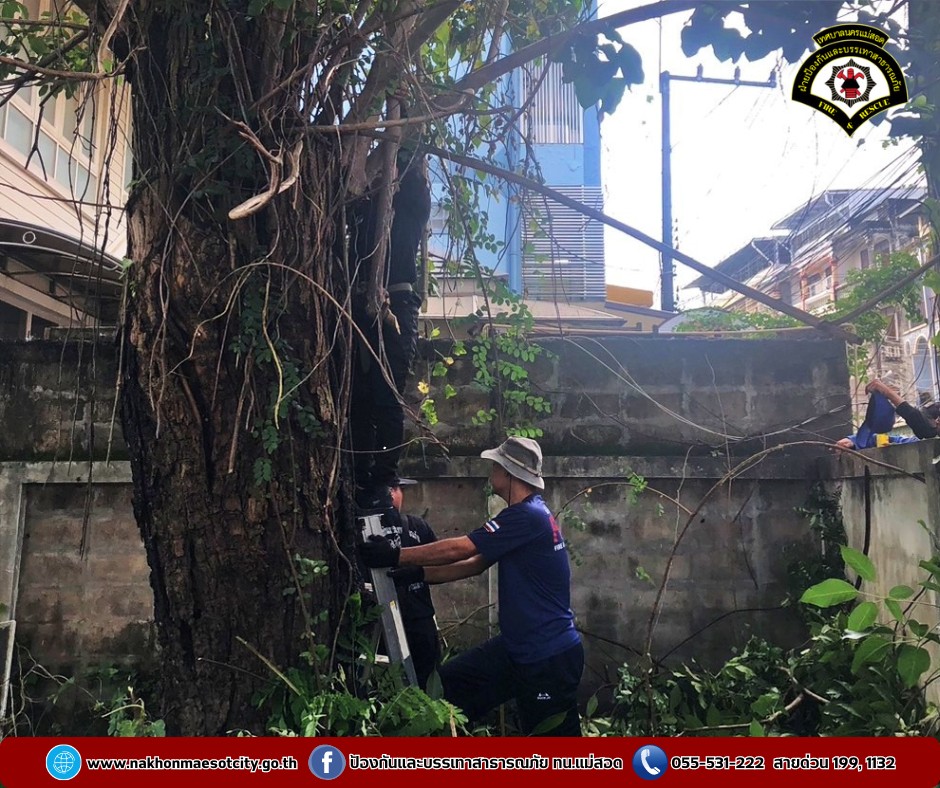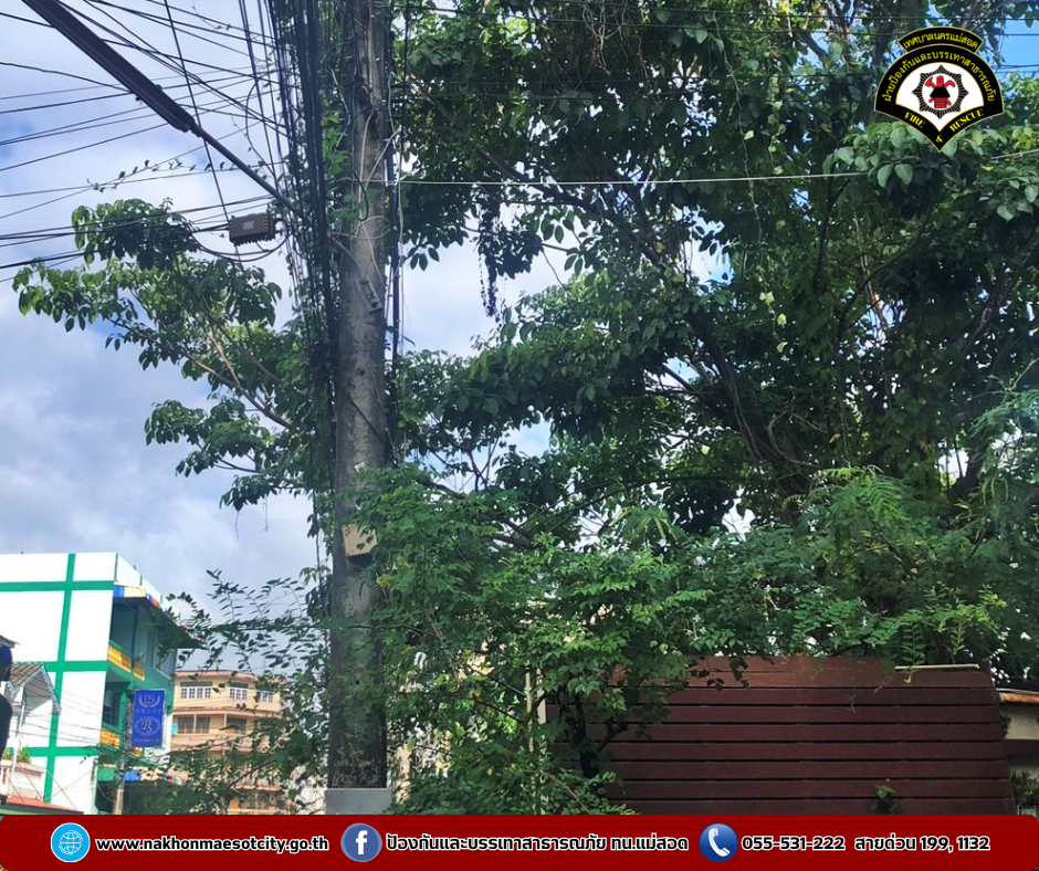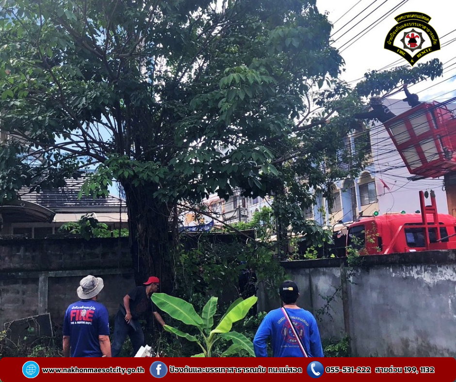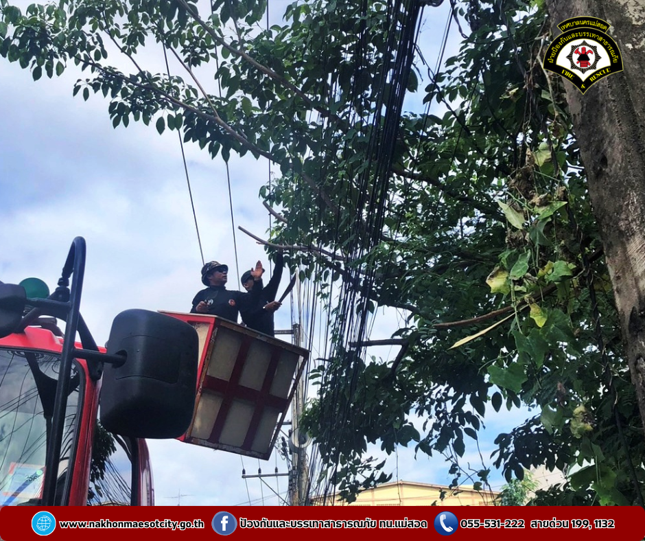 วันพุธที่ 14 สิงหาคม 2567 เวลา 09.00 น. ดับเพลิงนครแม่สอด ได้รับคำร้องขอความอนุเคราะห์ตัดต้นไม้ บริเวณบ้านพักสำนักงานสรรพากรพื้นที่สาขาแม่สอด จังหวัดตาก เนื่องจากกิ่งไม้พาดสายไฟฟ้า-สื่อสาร