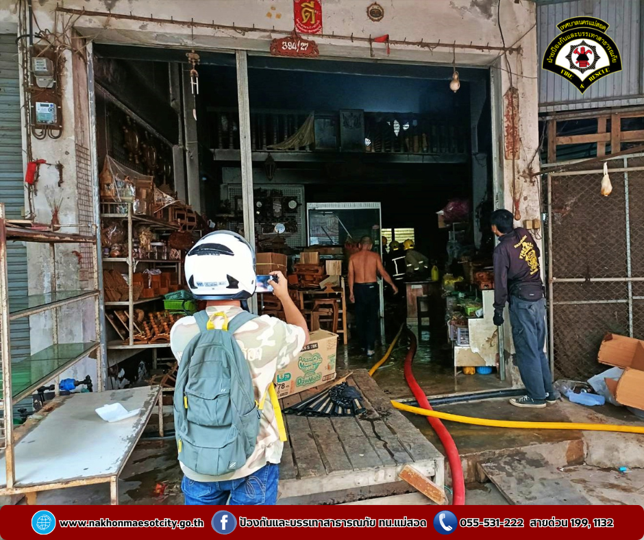 วันศุกร์ที่ 9 สิงหาคม 2567 เวลา 09.55 น. ฝ่ายป้องกันและบรรเทาสาธารณภัย เทศบาลนครแม่สอด ได้รับแจ้งจากประชาชน ว่ามีเหตุเพลิงไหม้บ้านเรือนประชาชน บริเวณร้านเฟอร์นิเจอร์ไม้ ใกล้เคียงร้านกระเพาะปลาริมเมย ตำบลท่าสายลวด อำเภอแม่สอด จังหวัดตาก