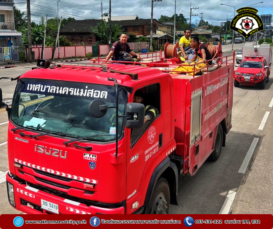 ฝ่ายป้องกันและบรรเทาสาธารณภัย เทศบาลนครแม่สอด จึงรายงานว่าที่ร้อยตรีประเสริฐ ปวงละคร นายกเทศมนตรีนครแม่สอด ทราบ และได้นำรถยนต์ดับเพลิง จำนวน 1 คัน รถยนต์บรรทุกน้ำดับเพลิง จำนวน 2 คัน และรถยนต์กู้ภัยเคลื่อนที่เร็ว จำนวน 1 คัน พร้อมนักผจญเพลิง ร่วมกับงานป้องกันและบรรเทาสาธารณภัย ทต.ท่าสายลวด สายตรวจท่าสายลวด มูลนิธิพิทักกาญจน์ แม่สอด และเจ้าหน้าที่การไฟฟ้าแม่สอด ออกตรวจสอบ ณ ที่เกิดเหตุ