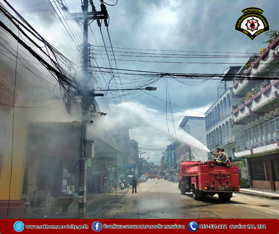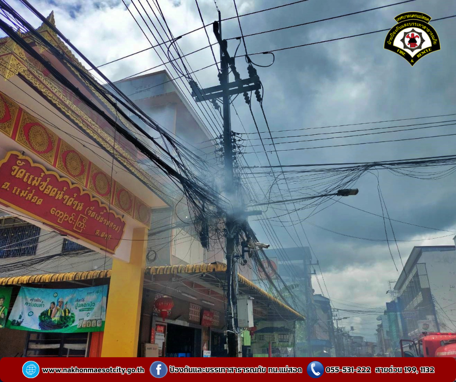 วันศุกร์ที่ 30 สิงหาคม 2567 เวลา 12.45 น. ฝ่ายป้องกันและบรรเทาสาธารณภัย เทศบาลนครแม่สอด ได้รับแจ้งจากประชาชน ว่ามีเหตุเพลิงไหม้สายไฟฟ้า สายสื่อสาร บริเวณถนนประสาทวิถี ใกล้เคียงวัดแม่ซอดน่าด่าน (วัดเงี้ยวหลวง) ตำบลแม่สอด อำเภอแม่สอด จังหวัดตาก