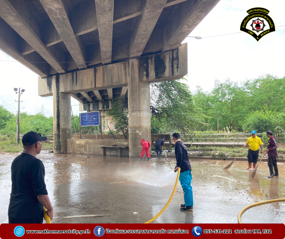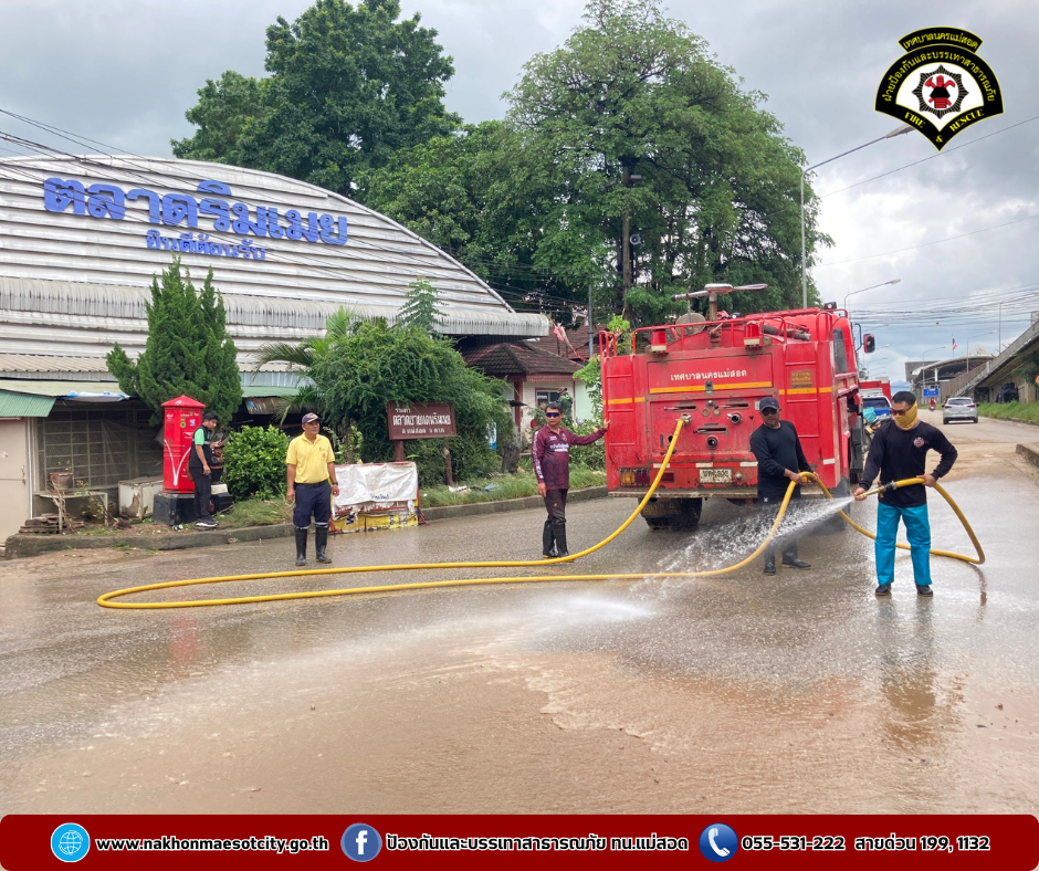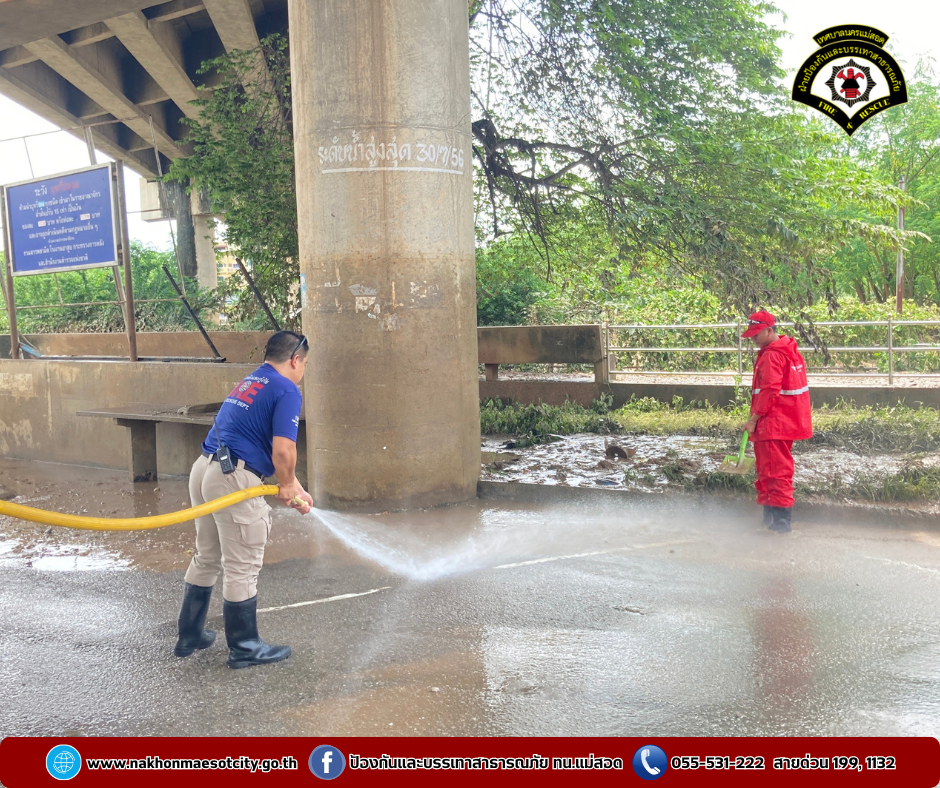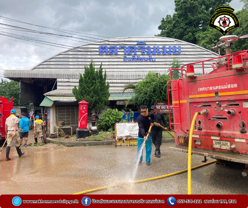 โดยเป็นการบูรณาการณ์ร่วมกันทำความสะอาดฉีดล้างบริเวณตลาดริมเมย อำเภอแม่สอด จังหวัดตาก หลังจากสถานการณ์แม่น้ำเมยที่เอ่อล้นตลิ่งได้คลี่คลายลงให้กลับมารองรับนักท่องเที่ยวได้ตามปกติ