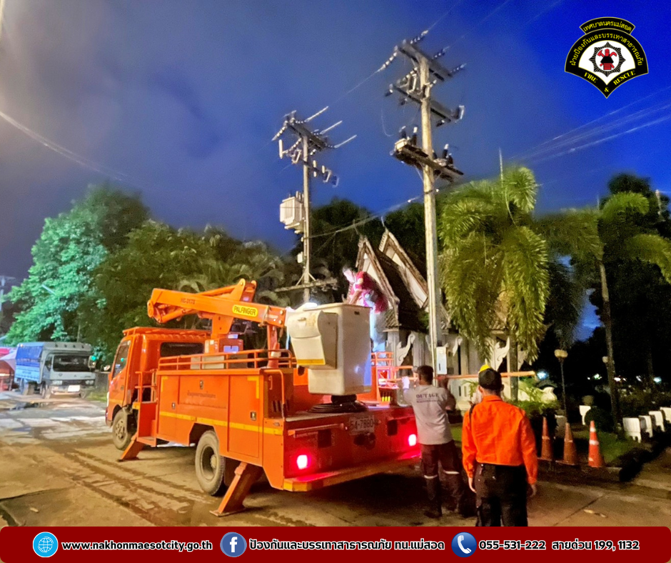 ฝ่ายป้องกันและบรรเทาสาธารณภัย เทศบาลนครแม่สอด จึงรายงานว่าที่ร้อยตรีประเสริฐ ปวงละคร นายกเทศมนตรีนครแม่สอด ทราบ และได้นำรถยนต์บรรทุกน้ำดับเพลิง จำนวน 1 คัน พร้อมนักผจญเพลิง ร่วมกับเจ้าหน้าที่การไฟฟ้าแม่สอด ออกตรวจสอบ ณ ที่เกิดเหตุ