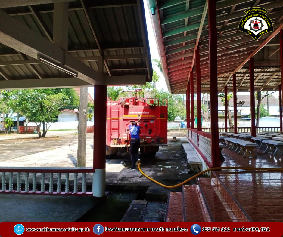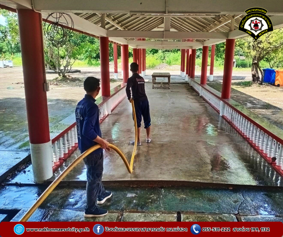 วันศุกร์ที่ 20 กันยายน 2567 เวลา 13.30 น. ว่าที่ร้อยตรี ประเสริฐ ปวงละคร นายกเทศมนตรีนครแม่สอด มอบหมายให้ดับเพลิงนครแม่สอด นำรถยนต์บรรทุกน้ำดับเพลิง จำนวน 1 คัน พร้อมเจ้าหน้าที่ ออกดำเนินการฉีดล้างทำความสะอาด บริเวณสุสานวัดดอนแก้ว อำเภอแม่สอด จังหวัดตาก เพื่อเป็นการทำความสะอาด ระเบียบเรียบร้อย ลดปริมาณฝุ่นละอองในอากาศ