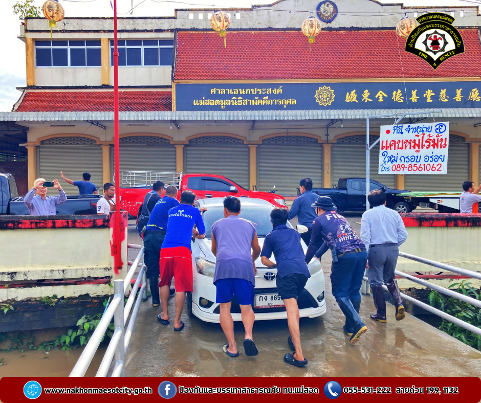 วันศุกร์ที่ 4 ตุลาคม 2567 เวลา 08.30 น.ว่าที่ร้อยตรีประเสริฐ ปวงละคร นายกเทศมนตรีเทศบาลนครแม่สอด พร้อมคณะผู้บริหาร และเจ้าหน้าที่ฝ่ายป้องกันและบรรเทาสาธารณภัย ร่วมลงพื้นที่สำรวจและให้การช่วยเหลือประชาชนที่ได้รับผลกระทบจากอุทกภัยจนผ่านพ้นไปได้ด้วยดี