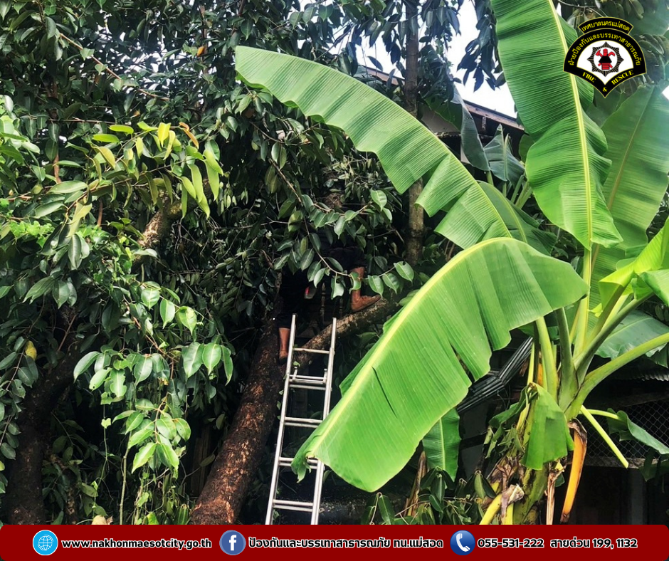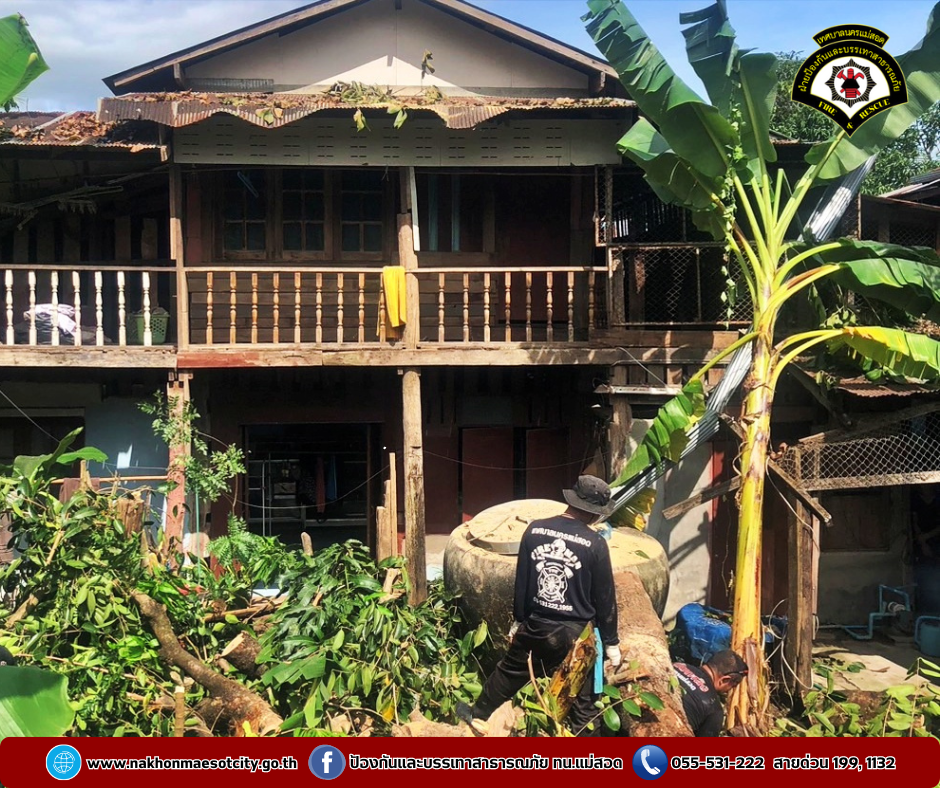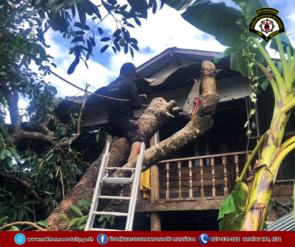 ว่าที่ร้อยตรีประเสริฐ ปวงละคร นายกเทศมนตรีนครแม่สอด ร่วมลงพื้นที่กับฝ่ายป้องกันและบรรเทาสาธารณภัย นำรถยนต์บรรทุก 6 ล้อ พร้อมอุปกรณ์ ดำเนินการตัดต้นไม้ที่โค่นล้มทับบ้านเรือนของประชาชนดังกล่าว โดยใช้เลื่อยโซ่ยนต์ และใช้มีด ดำเนินการตัดจนแล้วเสร็จ พร้อมยกใส่รถยนต์บรรทุก 6 ล้อ ดำเนินการนำกิ่งไม้ไปทิ้งต่อไป เพื่อความเป็นระเบียบเรียบร้อย และความปลอดภัยบริเวณดังกล่าว