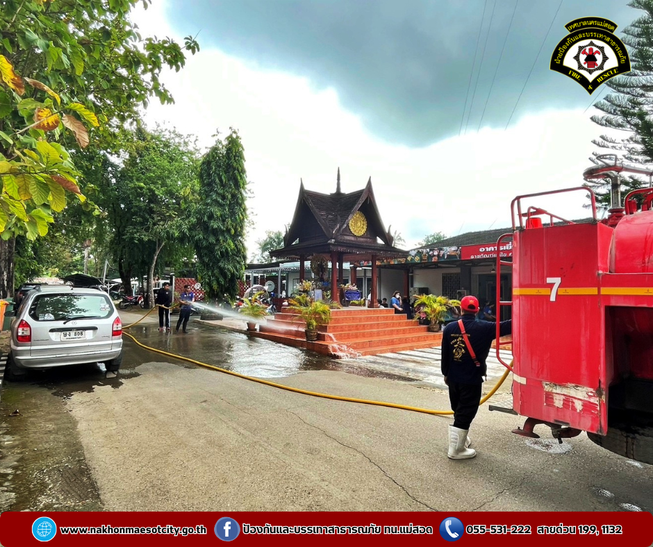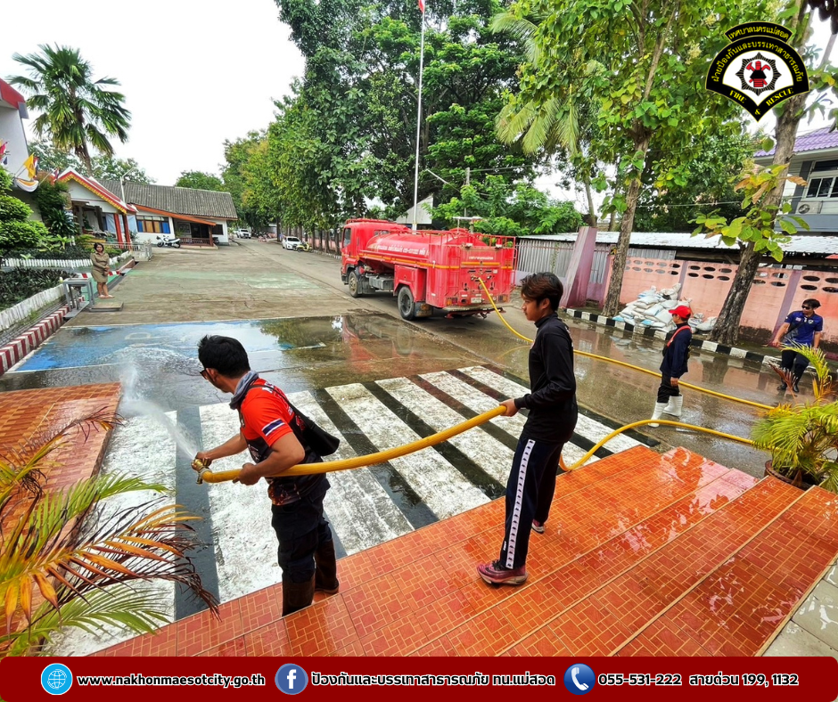 วันศุกร์ที่ 18 ตุลาคม 2567 เวลา 09.30 น. ว่าที่ร้อยตรี ประเสริฐ ปวงละคร นายกเทศมนตรีนครแม่สอด มอบหมายให้เจ้าหน้าที่ดับเพลิงนครแม่สอด นำรถยนต์บรรทุกน้ำดับเพลิง จำนวน 1 คัน ออกดำเนินการฉีดล้างทำความสะอาด ลานอเนกประสงค์ของเรือนจำอำเภอแม่สอด จังหวัดตาก ตามคำร้องขอความอนุเคราะห์ฯ เพื่อขจัดเศษ หิน ดิน ทราย รวมถึงสิ่งปนเปื้อนบนพื้นผิวถนน