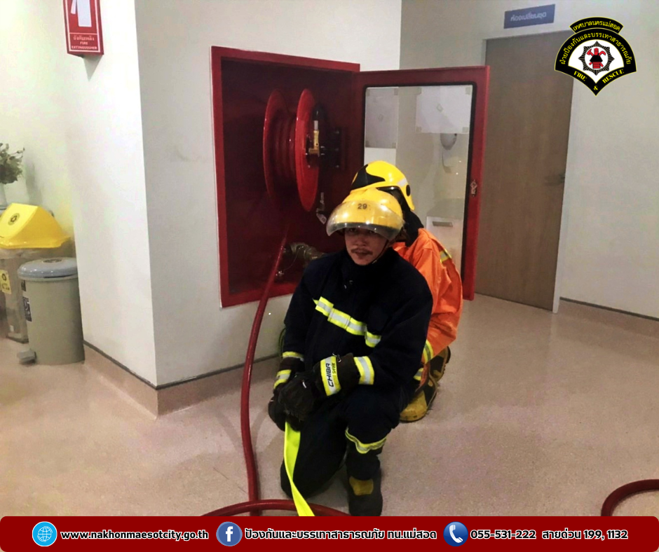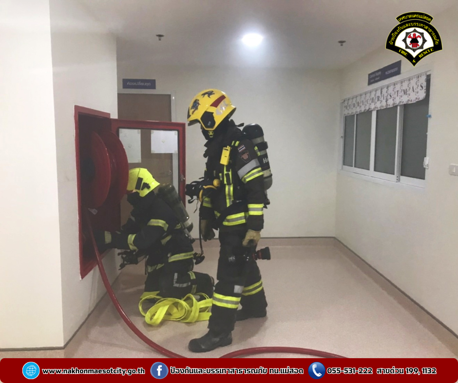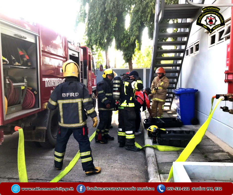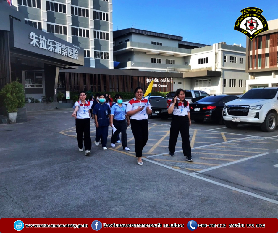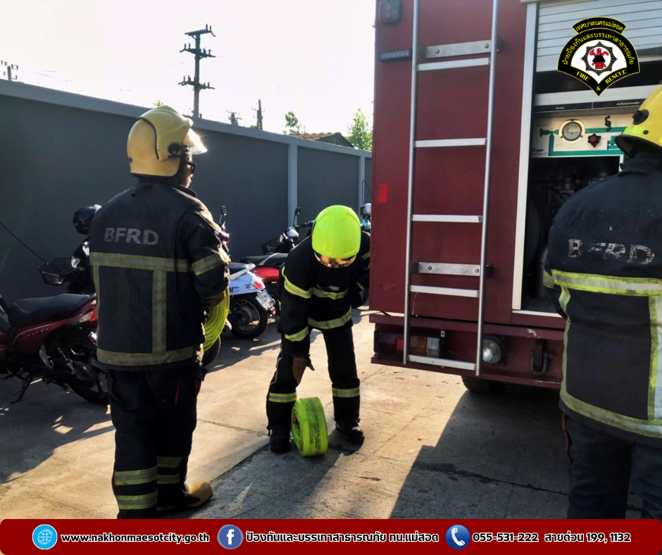 ฝ่ายป้องกันและบรรเทาสาธารณภัย เทศบาลนครแม่สอด จึงนำรถยนต์บรรทุกน้ำดับเพลิง จำนวน 1 คัน พร้อมชุดผจญเพลิง ออกดำเนินการตามโครงการอบรมเชิงปฏิบัติการเรื่องการอบรมดับเพลิงเบื้องต้นและอพยพหนีไฟ ประจำปี 2567 ของโรงพยาบาลจุฬารัตน์ แม่สอด ร่วมกับโรงพยาบาลแม่สอด สถานีตำรวจภูธรแม่สอด