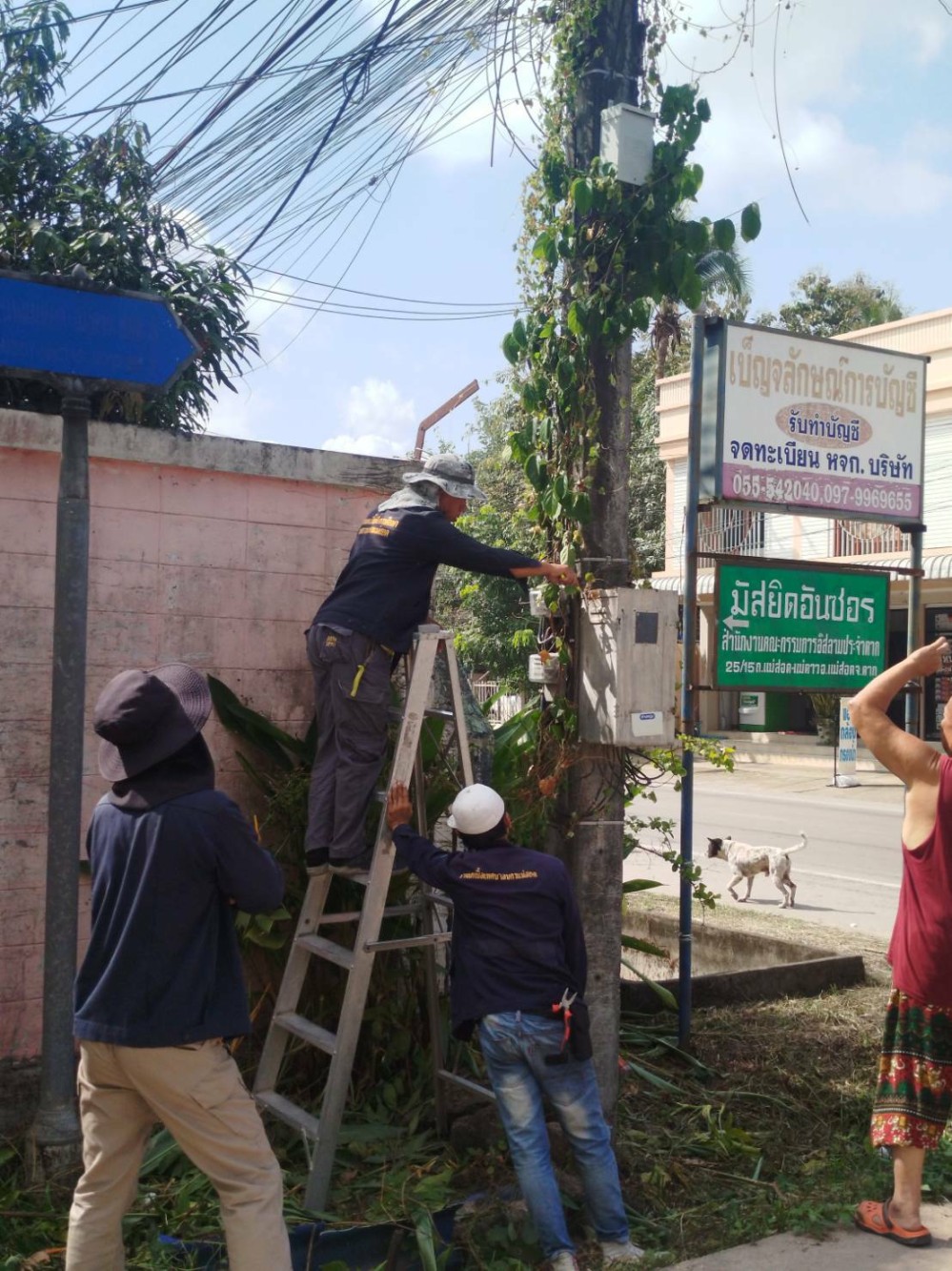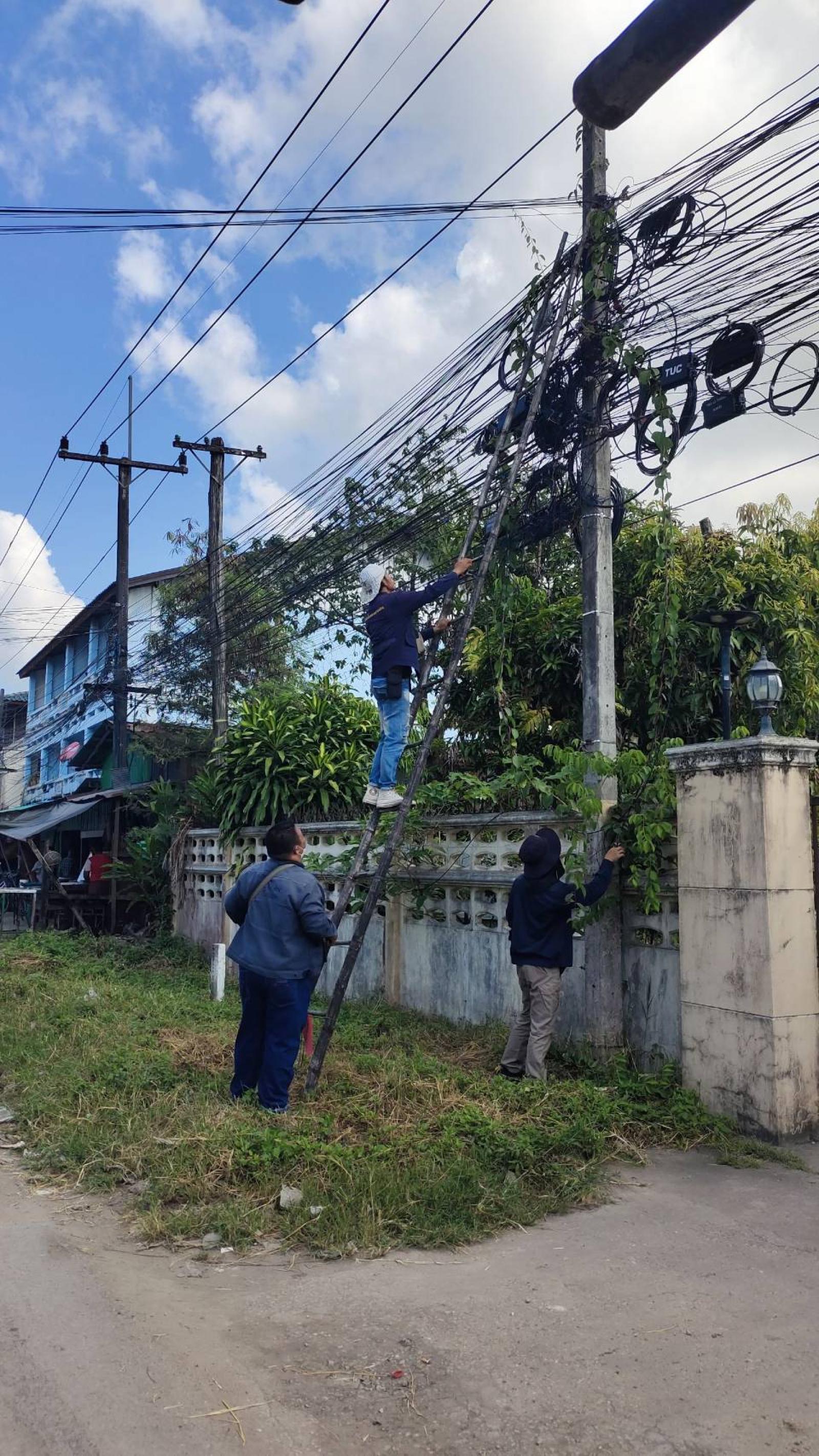 2.ลงพื้นที่ดำเนินการตรวจสอบและซ่อมแซมเคเบิ้ลทีวี ในชุมชนร่วมเเรง