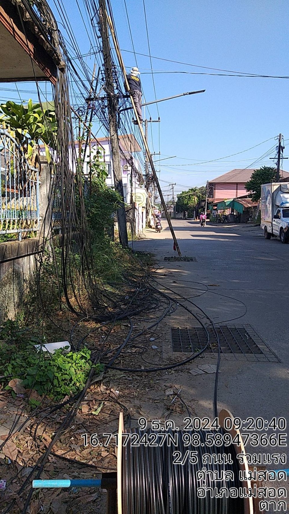 ลงพื้นที่ดำเนินการติดตั้งและซ่อมแซมเคเบิ้ลทีวี เหตุเพลิงไหม้เสาไฟหน้าหมู่บ้านในฝัน