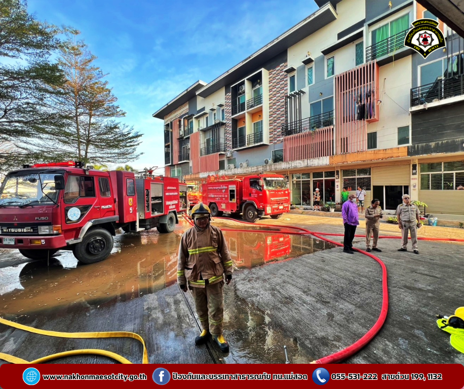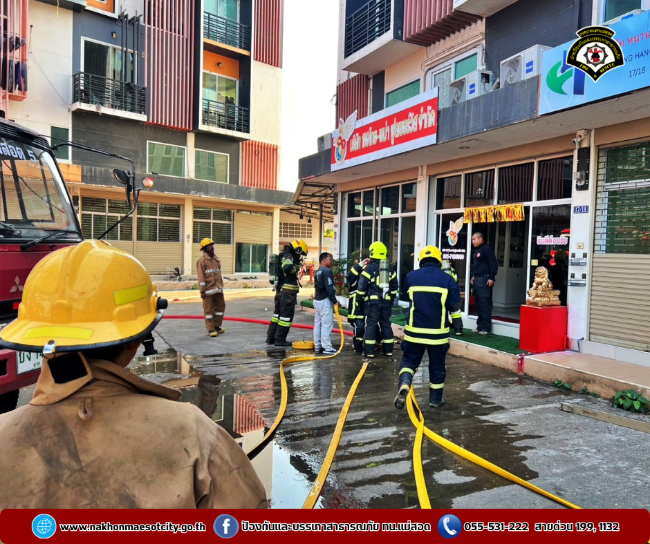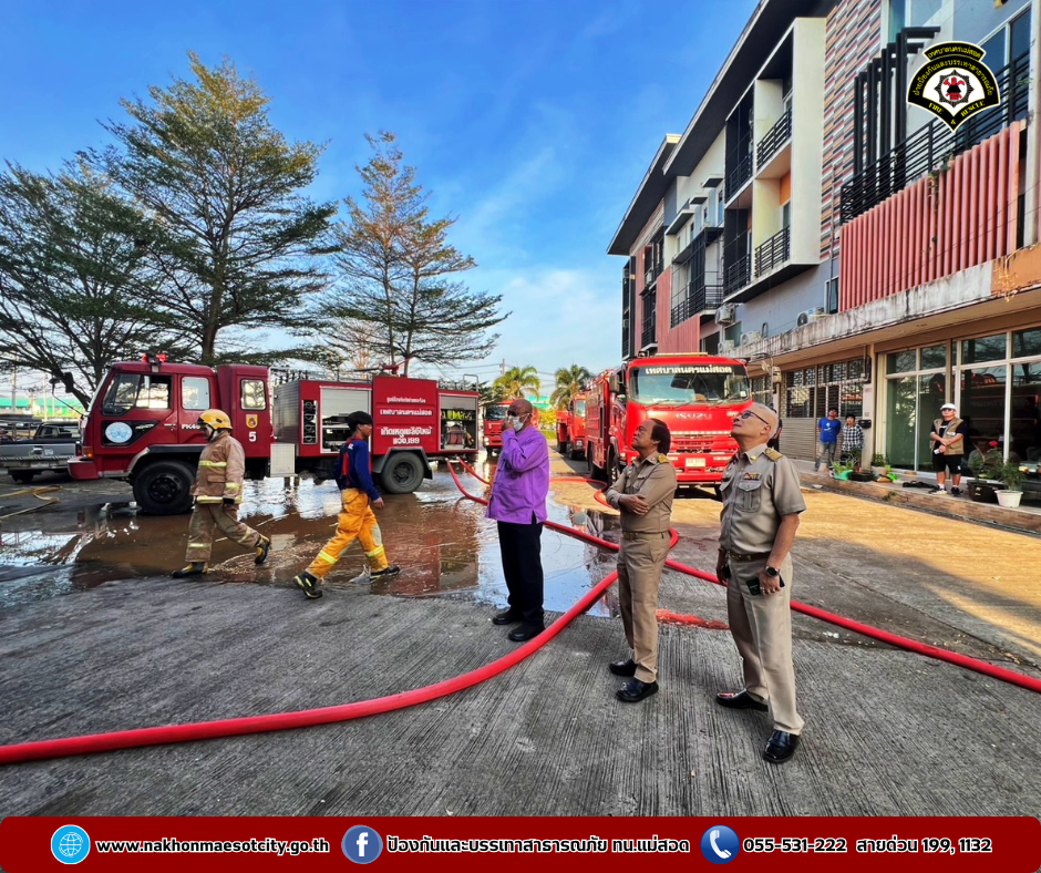 ฝ่ายป้องกันและบรรเทาสาธารณภัย เทศบาลนครแม่สอด ได้รับแจ้งจากประชาชนว่าเกิดเหตุเพลิงไหม้อาคารพาณิชย์ของบริษัท 189 ไทย-พม่า ฟูลเซอร์วิส จำกัด