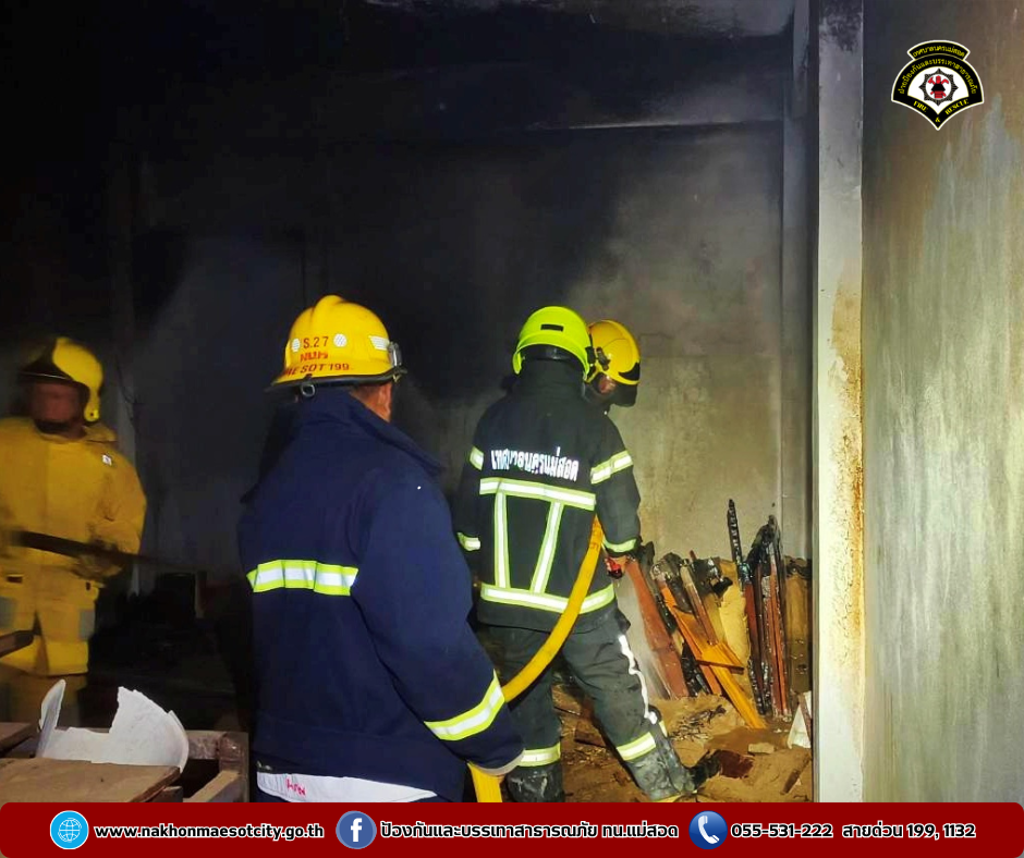 ดับเพลิงนครแม่สอด ออกระงับเหตุเพลิงไหม้อาคารพาณิชย์ (ระหว่างก่อสร้าง) ใกล้เคียงมัสยิดโดมทอง ชุมชนอิสลาม