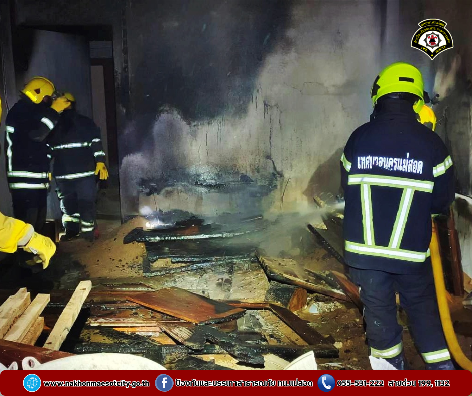 ดับเพลิงนครแม่สอด ออกระงับเหตุเพลิงไหม้บ้านประชาชน บริเวณหมู่บ้านสหกรณ์ ซอย 2