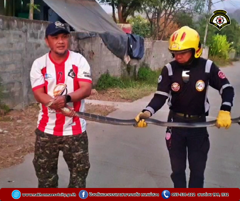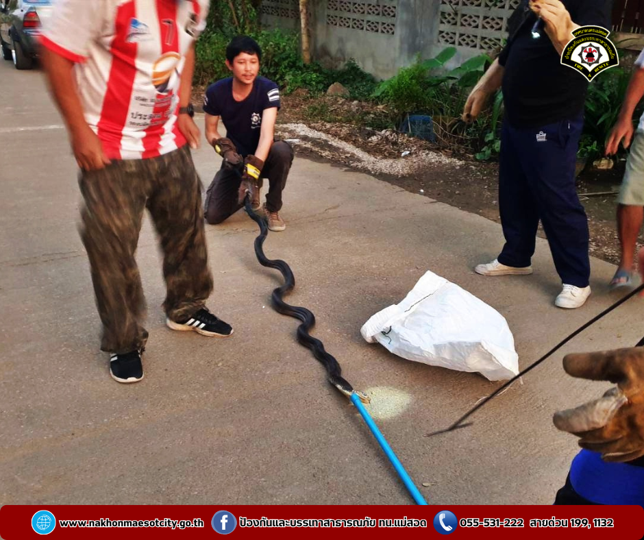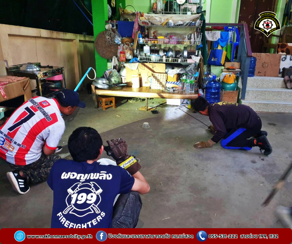 วันอาทิตย์ที่ 19 มกราคม 2568 เวลา 18.30 น. ฝ่ายป้องกันและบรรเทาสาธารณภัย เทศบาลนครแม่สอด ได้รับแจ้งจากประชาชนว่ามีสัตว์เลื้อยคลาน (งู) เข้าภายในบ้านเรือนประชาชน บริเวณหมู่บ้านหนองบัว เขตพื้นที่ตำบลแม่ปะ อำเภอแม่สอด จังหวัดตาก นายมนูศักดิ์ จันทร์โต นักป้องกันและบรรเทาสาธารณภัย รักษาราชการแทน หัวหน้าฝ่ายป้องกันและบรรทาสาธารณภัย จึงได้นำรถยนต์ตรวจการณ์ จำนวน 1 คัน เจ้าหน้าที่ พร้อมอุปกรณ์ ออกตรวจสอบ ณ บ้านประชาชน