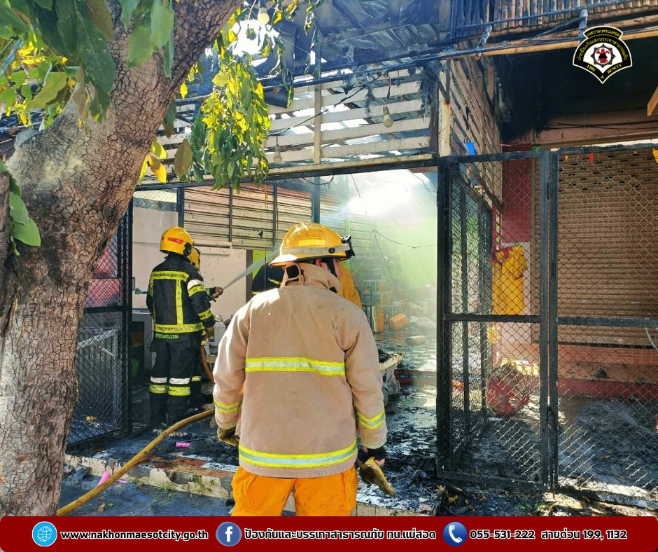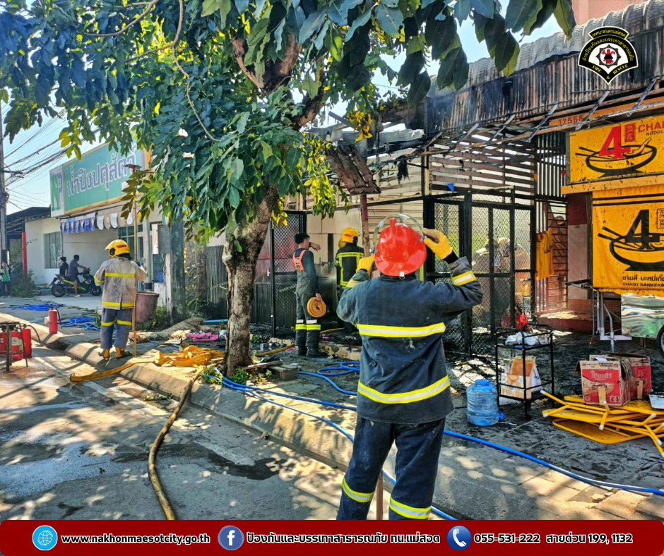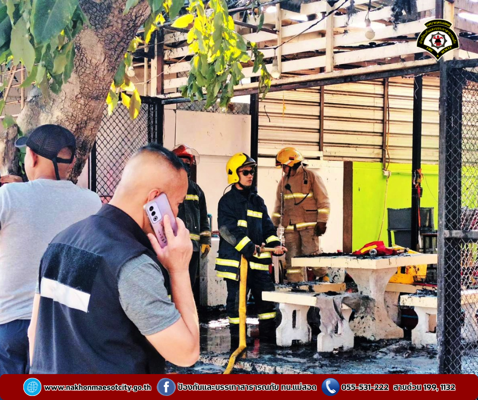 ฝ่ายป้องกันและบรรเทาสาธารณภัย เทศบาลนครแม่สอด ได้รับแจ้งจากประชาชนว่าเกิดเหตุเพลิงไหม้ร้านอาหาร ใกล้เคียงน้ำปิงปศุสัตว์ ถนนยอดข้าว อำเภอแม่สอด จังหวัดตาก