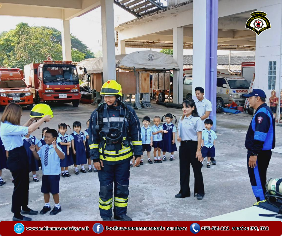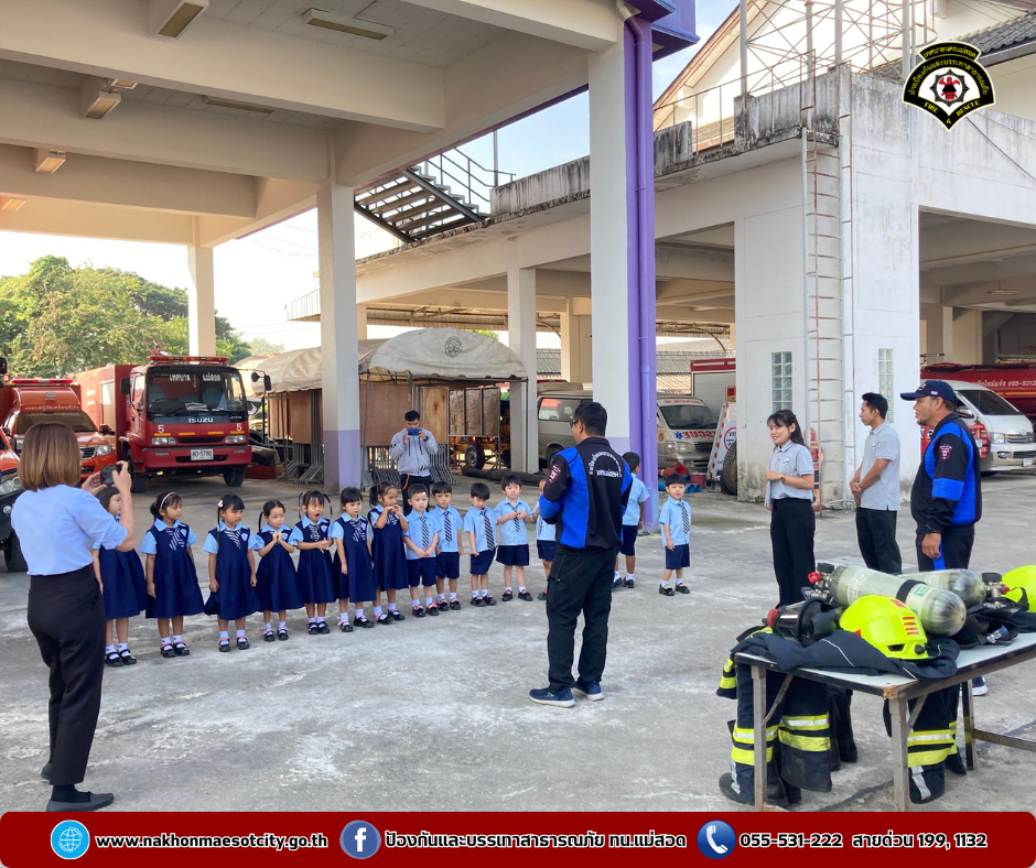 ฝ่ายป้องกันและบรรเทาสาธารณภัย เทศบาลนครแม่สอด เพื่อรับฟังการบรรยาย เรื่อง การใช้เครื่องมือ-อุปกรณ์ในการกู้ภัย และชุดดับเพลิงต่างๆ ให้นักเรียนได้เรียนรู้ได้ศึกษาดูงาน ณ ฝ่ายป้องกันและบรรเทาสาธารณภัย เทศบาลนครแม่สอด อำเภอแม่สอด จังหวัดตาก