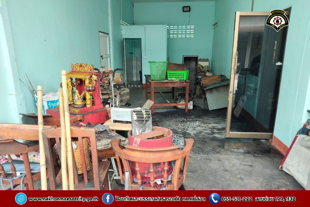ดับเพลิงนครแม่สอด ออกตรวจสอบข้อเท็จจริงกรณีเหตุเพลิงไหม้สำนักงาน หจก.ธนสารโกศล พืชไร่ ถนนราษฎร์อุทิศ