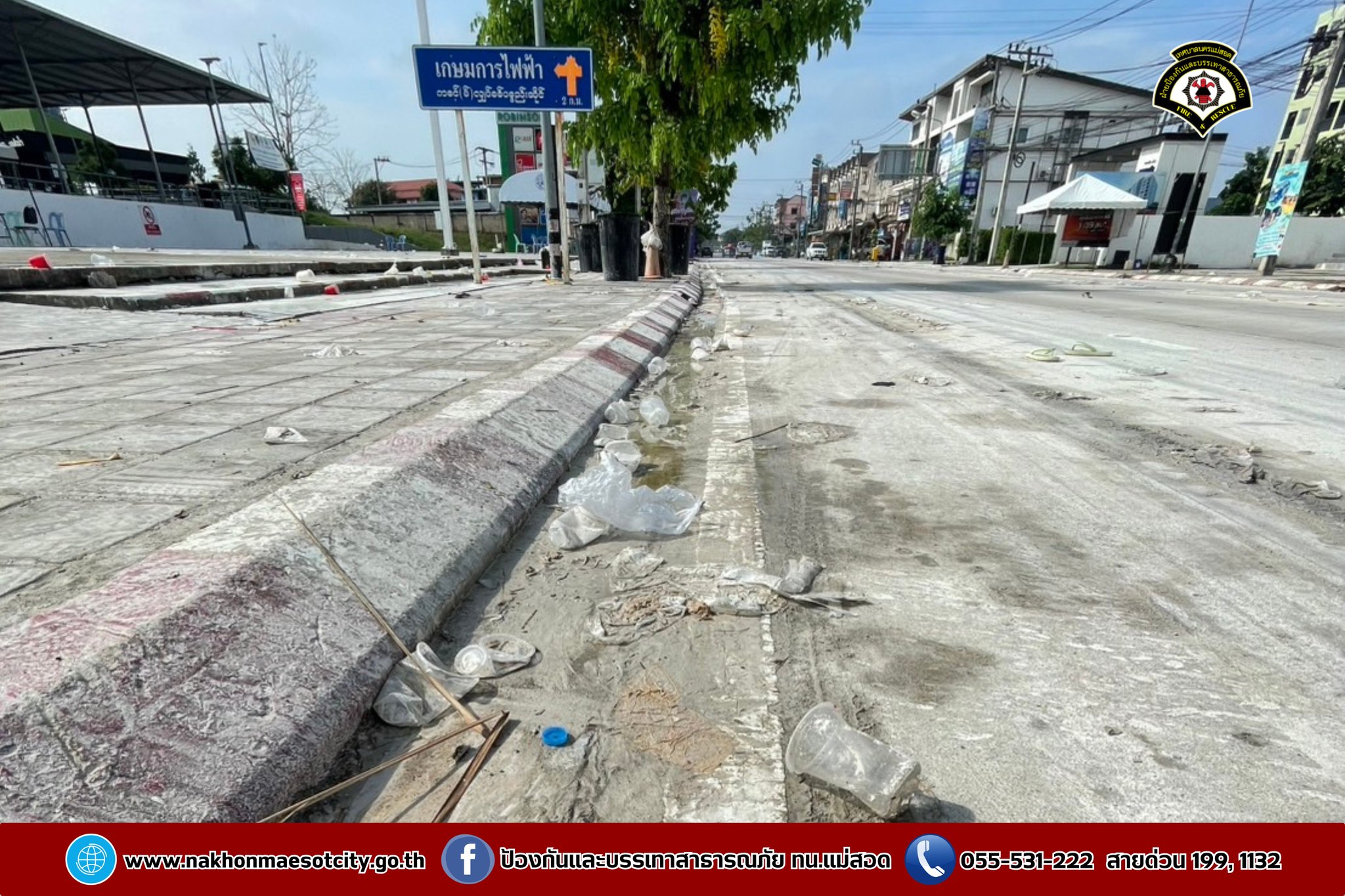 ฝ่ายป้องกันบรรเทาสาธารณภัย สำนักปลัดเทศบาล เทศบาลนครแม่สอด นำรถยนต์บรรทุกน้้ำดับเพลิง จำนวน 2 คัน พร้อมเจ้าหน้าที่ ออกดำเนินการฉีดล้างทำความสะอาดถนน บริเวณจุดจัดให้เล่นน้ำสงกรานต์ (Zoning) ถนนยอดข้าว ตั้งแต่แยกโรบินสัน แม่สอด - แยกร้านเจ้าสัว อำเภอแม่สอด จังหวัดตาก เพื่อป้องกันการเกิดอุบัติเหตุถนนลื่น จากการเล่นแป้ง ดินสอพอง และเพื่อเป็นการรักษาความสะอาด