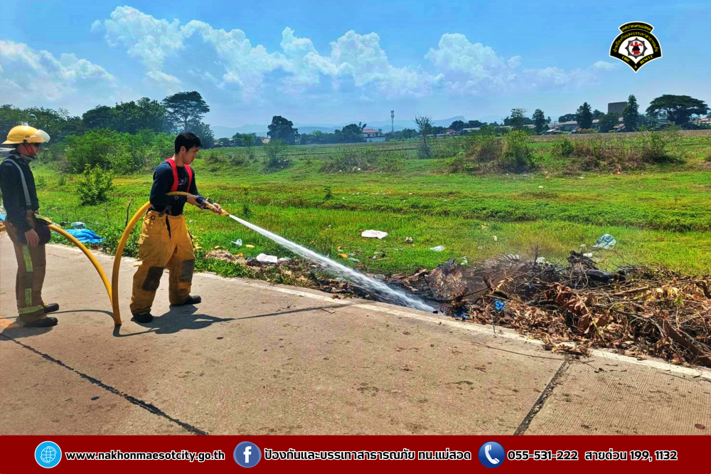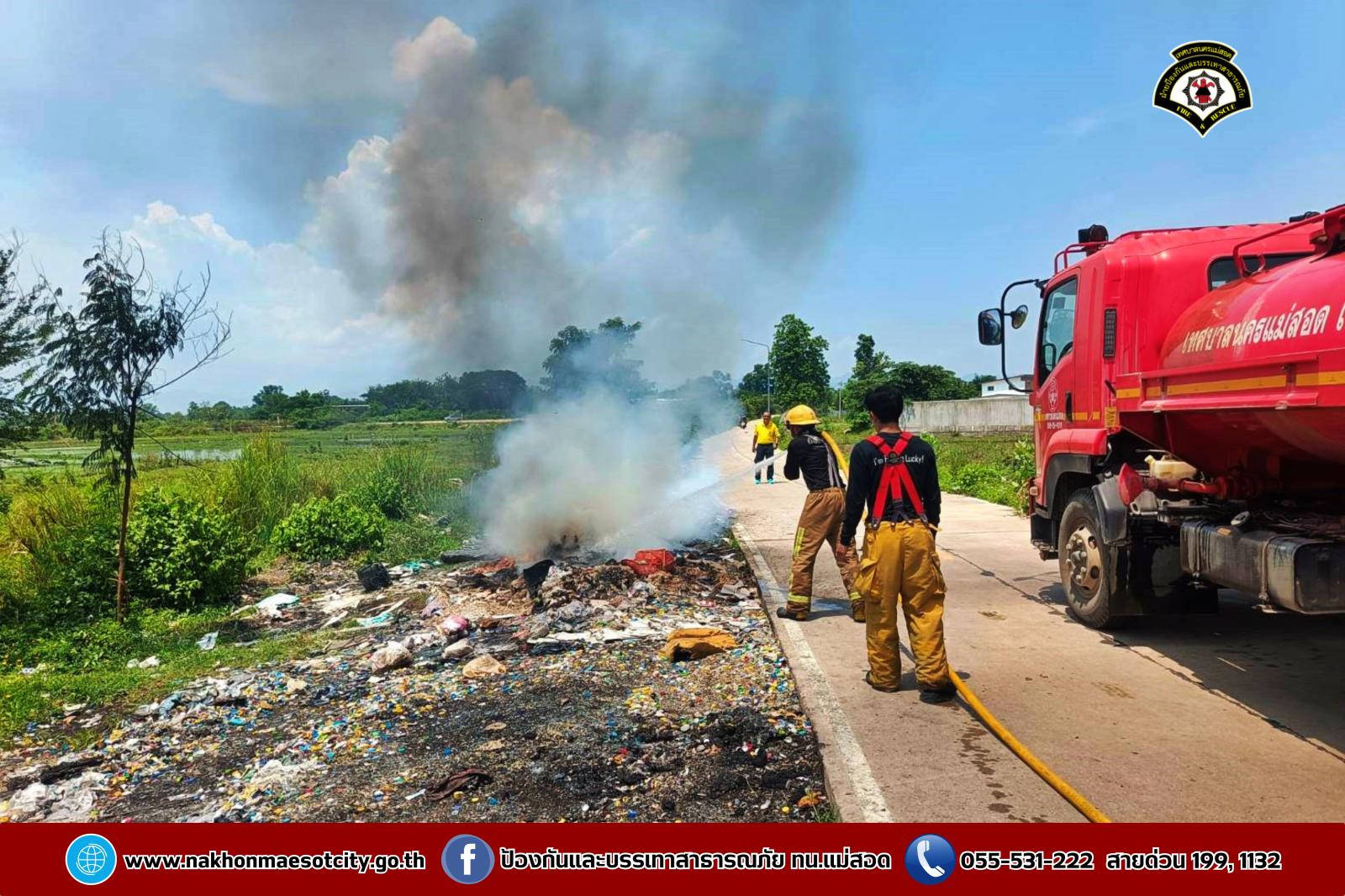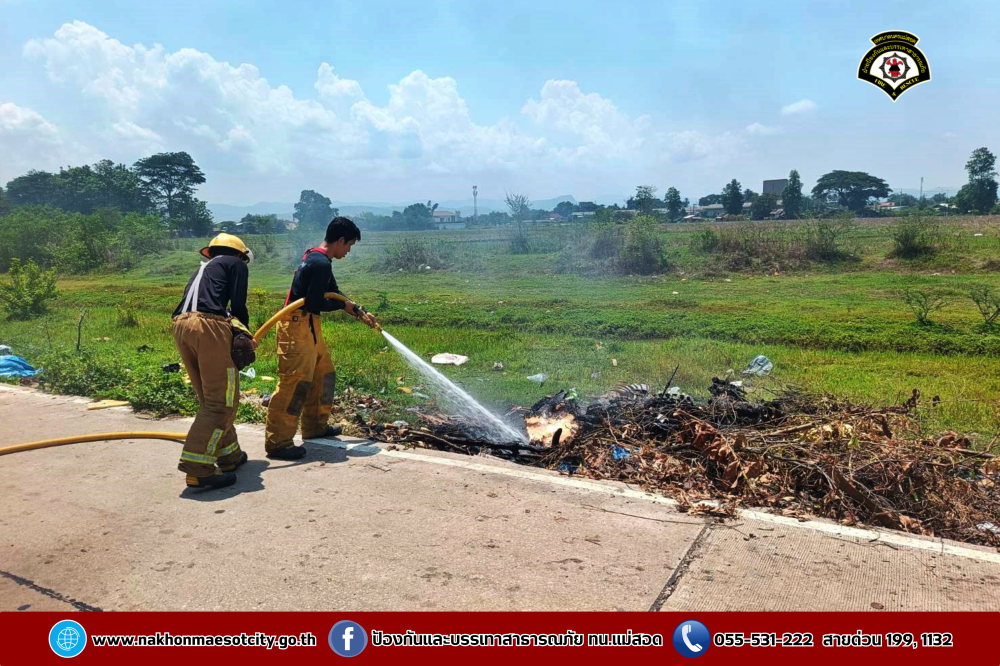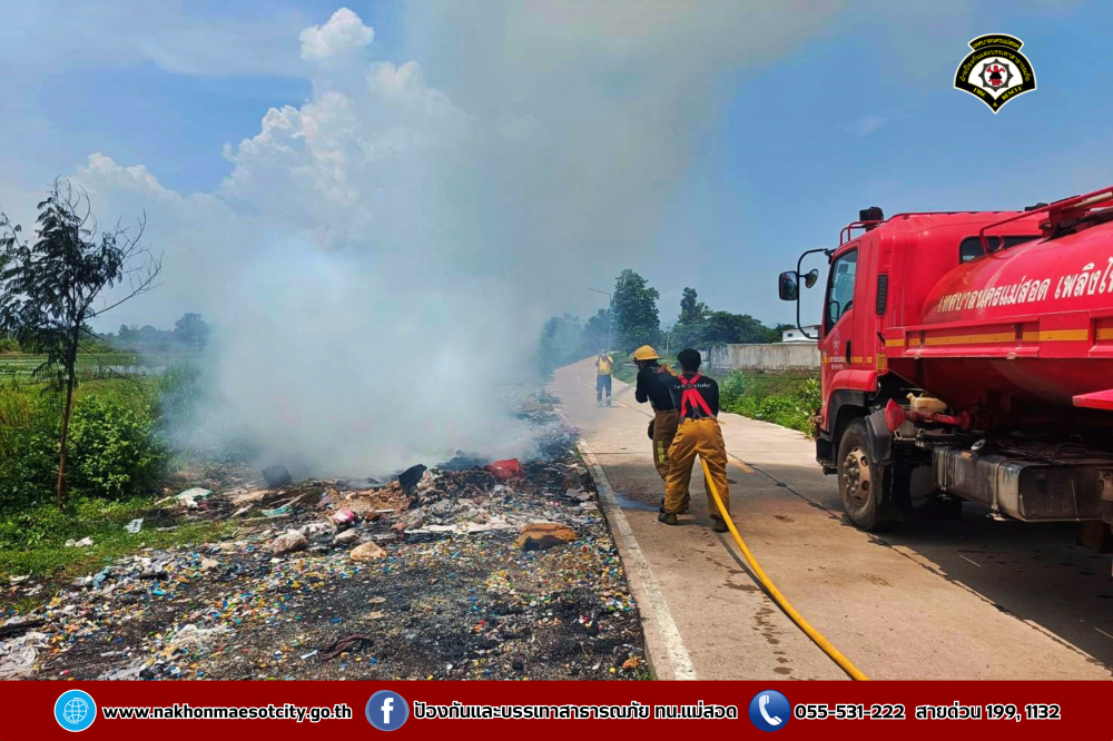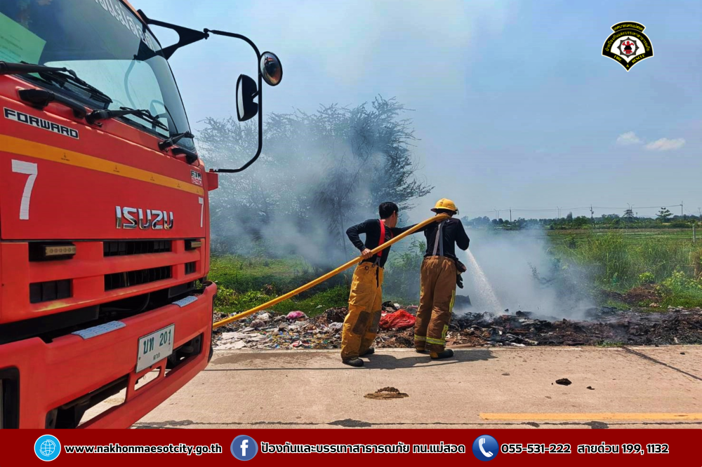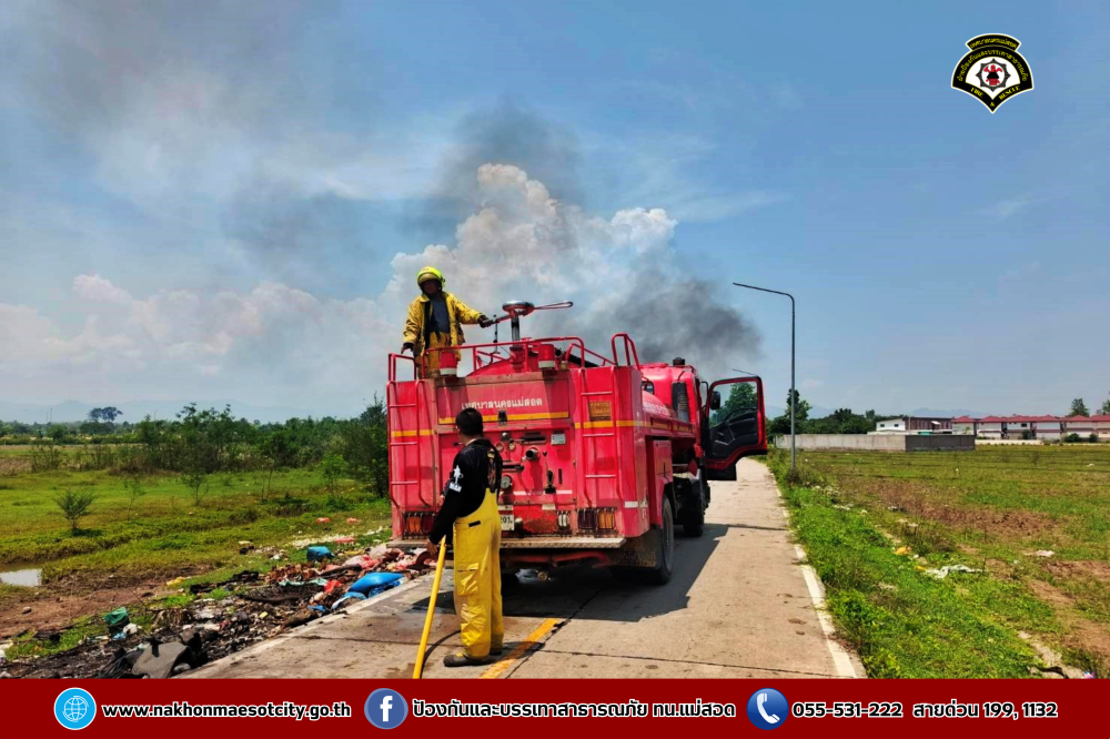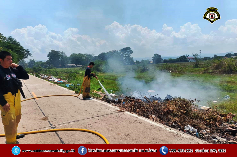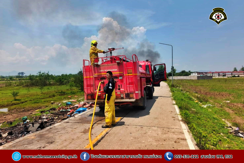วันศุกร์ที่ 2 พฤษภาคม 2568 เวลาประมาณ 11.30 น. งานวิทยุสื่อสารและโทรศัพท์ ศูนย์เมืองฉอด ได้รับแจ้งว่าเกิดเหตุเพลิงไหม้กองขยะ บริเวณถนนเลียบคลองหม่องโคย ใกล้เคียงหมู่บ้านมั่นคง 2 ตำบลแม่สอด อำเภอแม่สอด จังหวัดตาก