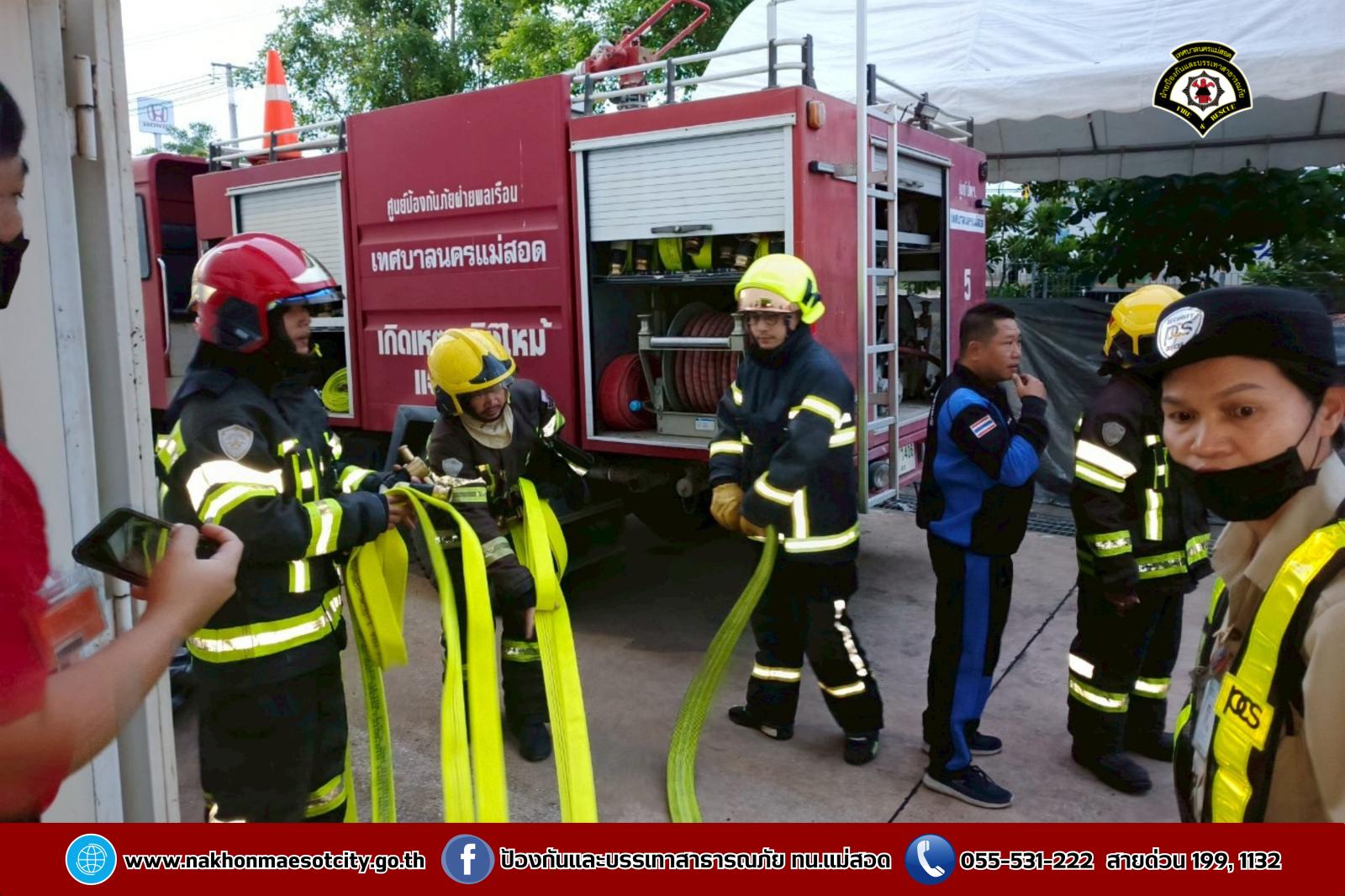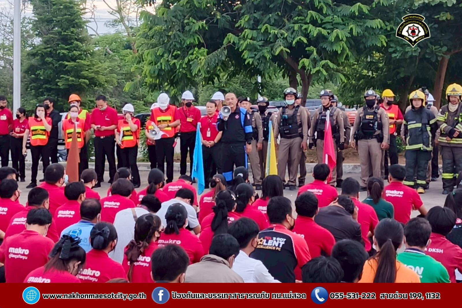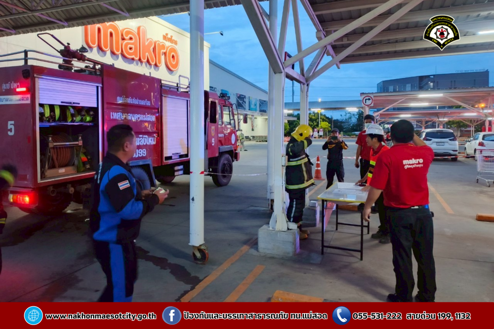 เข้าร่วมฝึกซ้อมแผนดับเพลิง และอพยพหนีไฟ โดยมีการสมมุติเหตุการณ์เหมือนสถานการณ์จริง เพื่อเป็นการเตรียมพร้อมรับสถานการณ์ฉุกเฉินอพยพบุคลากร เจ้าหน้าที่ และลูกค้าออกจากตัวอาคารสู่พื้นที่ปลอดภัย เพื่อความปลอดภัยอย่างสูงสุด ณ บมจ.ซีพี แอ็กซ์ตร้า สาขาแม่สอด (ไฮเปอร์มาร์เก็ต แม็คโคร แม่สอด)