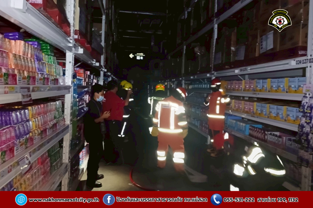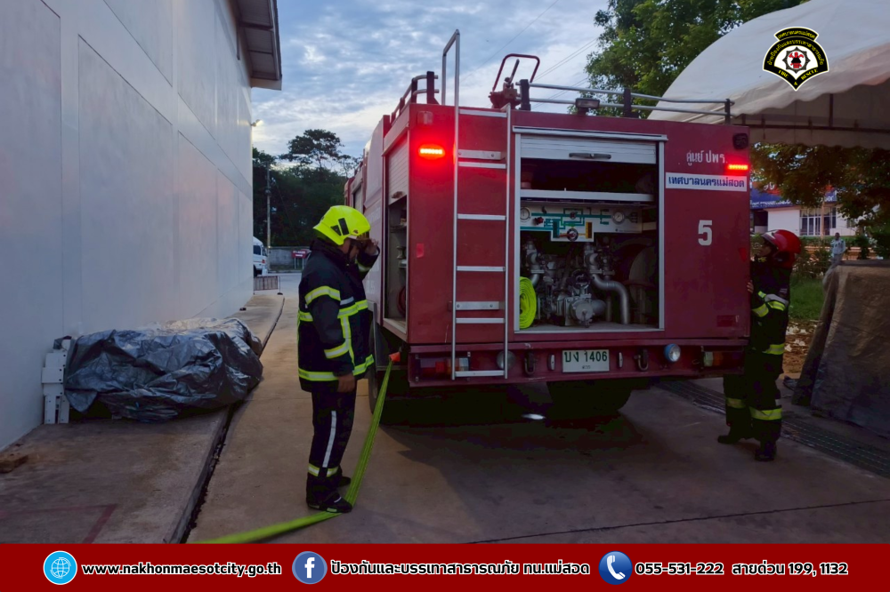 เมื่อวันอังคารที่ 20 พฤษภาคม 2568 เวลา 05.30 น. ณ บมจ.ซีพี แอ็กซ์ตร้า สาขาแม่สอด (ไฮเปอร์มาร์เก็ต แม็คโคร แม่สอด) นายประสาน มั่นมาก รองปลัดเทศบาล รักษาราชการแทน ปลัดเทศบาล ปฏิบัติหน้าที่ นายกเทศมนตรีนครแม่สอด มอบหมายให้นายมนูศักดิ์ จันทร์โต นักป้องกันและบรรเทาสาธารณภัยชำนาญการ รักษาราชการแทน หัวหน้าฝ่ายป้องกันและบรรเทาสาธารณภัย พนักงานขับรถยนต์ พนักงานดับเพลิง รวมจำนวน 6 นาย พร้อมรถยนต์บรรทุกน้ำดับเพลิง จำนวน 1 คัน