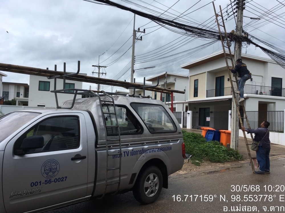 ว่าที่พันตรี ดร.ไพฑูรย์ ปริญญาธรรมกุล ผู้อำนวยการกองยุทธศาสตร์และงบประมาณ มอบหมายให้ เจ้าหน้าที่ช่างเคเบิ้ลทีวีเพื่อการศึกษา เจ้าหน้าที่ฝ่ายวิเทศสัมพันธ์ กองยุทธศาสตร์และงบประมาณ ลงพื้นที่ดำเนินการตามคำร้องขอซ่อมแซมเคเบิ้ลทีวี เพื่อการศึกษาเทศบาลนครแม่สอด ชุมชนสองแควสอง ชุมชนวัดหลวง และชุมชนบ้านทุ่ง เพื่อให้ประชาชนชุมชนดังกล่าวสามารถรับบริการเคเบิ้ลทีวีเพื่อการศึกษาเทศบาลนครแม่สอดได้