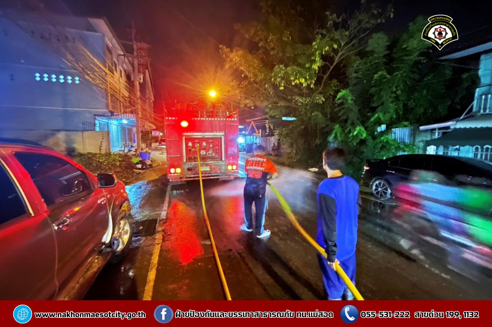 ดับเพลิงนครแม่สอด ออกระงับเหตุไฟฟ้าลัดวงจร บริเวณถนนราษฎร์อุทิศ ใกล้เคียงโรงพยาบาลแม่สอด-ราม