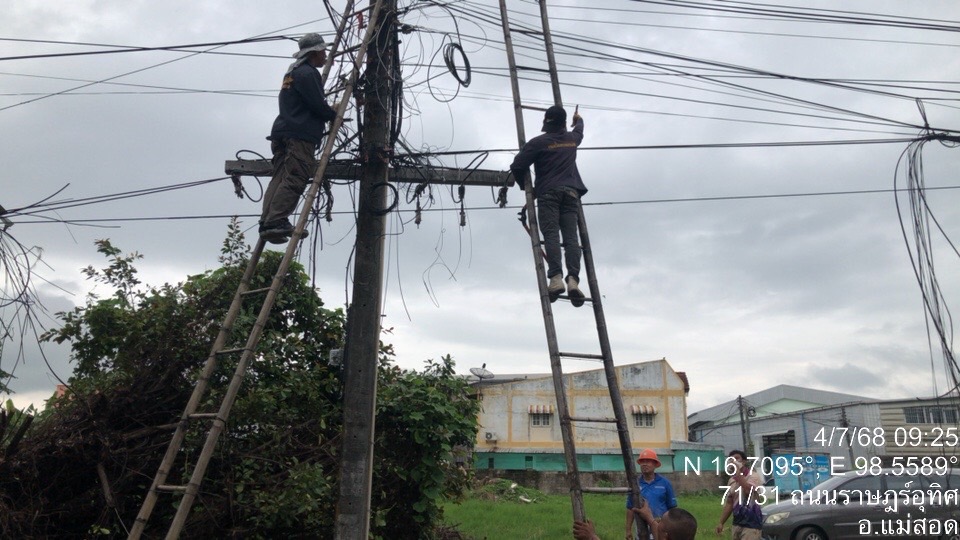 ว่าที่พันตรี ดร.ไพฑูรย์ ปริญญาธรรมกุล ผู้อำนวยการกองยุทธศาสตร์และงบประมาณ มอบหมายให้ เจ้าหน้าที่ช่างเคเบิ้ลทีวีเพื่อการศึกษา เจ้าหน้าที่ฝ่ายวิเทศสัมพันธ์ กองยุทธศาสตร์และงบประมาณ ลงพื้นที่ดำเนินการตามคำร้องจัดระเบียบสายเคเบิ้ลทีวีเพื่อการศึกษาเทศบาลนครแม่สอด ชุมชนประชารักษ์และบัวคูณ เพื่อให้ประชาชนชุมชนดังกล่าวสามารถรับบริการเคเบิ้ลทีวีเพื่อการศึกษาเทศบาลนครแม่สอดได้