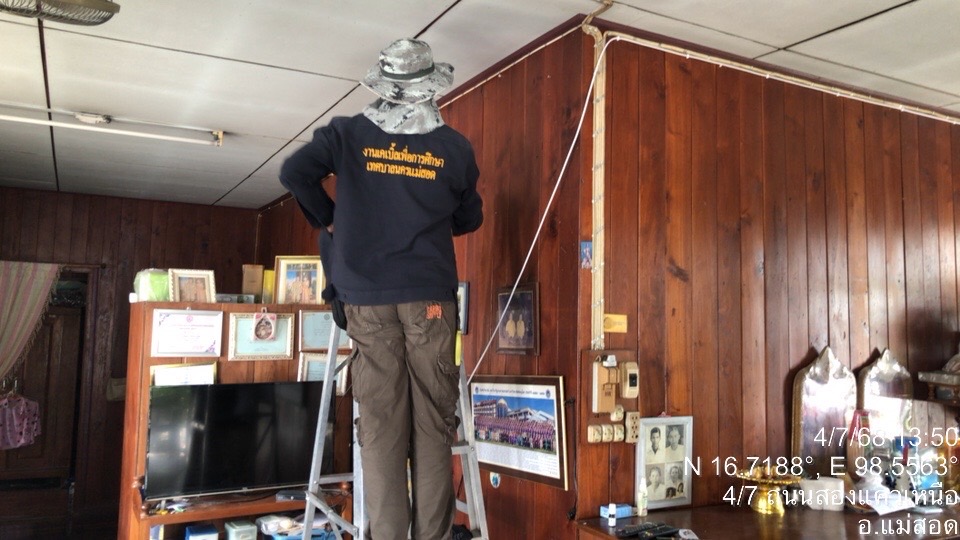 ว่าที่พันตรี ดร.ไพฑูรย์ ปริญญาธรรมกุล ผู้อำนวยการกองยุทธศาสตร์และงบประมาณ มอบหมายให้ เจ้าหน้าที่ช่างเคเบิ้ลทีวีเพื่อการศึกษา เจ้าหน้าที่ฝ่ายวิเทศสัมพันธ์ กองยุทธศาสตร์และงบประมาณ ลงพื้นที่ดำเนินการตามคำร้องขอซ่อมแซมเคเบิ้ลทีวี เพื่อการศึกษาเทศบาลนครแม่สอด ชุมชนสองแควหนึ่ง เพื่อให้ประชาชนชุมชนดังกล่าวสามารถรับบริการเคเบิ้ลทีวีเพื่อการศึกษาเทศบาลนครแม่สอดได้