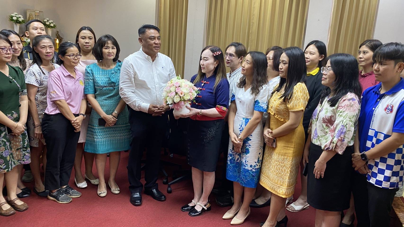 พนักงานเทศบาลและพนักงานจ้างสังกัดกองคลัง ร่วมมอบดอกไม้แสดงความยินดี นายกุล เครือวีระ นายกเทศมนตรีนครแม่สอด