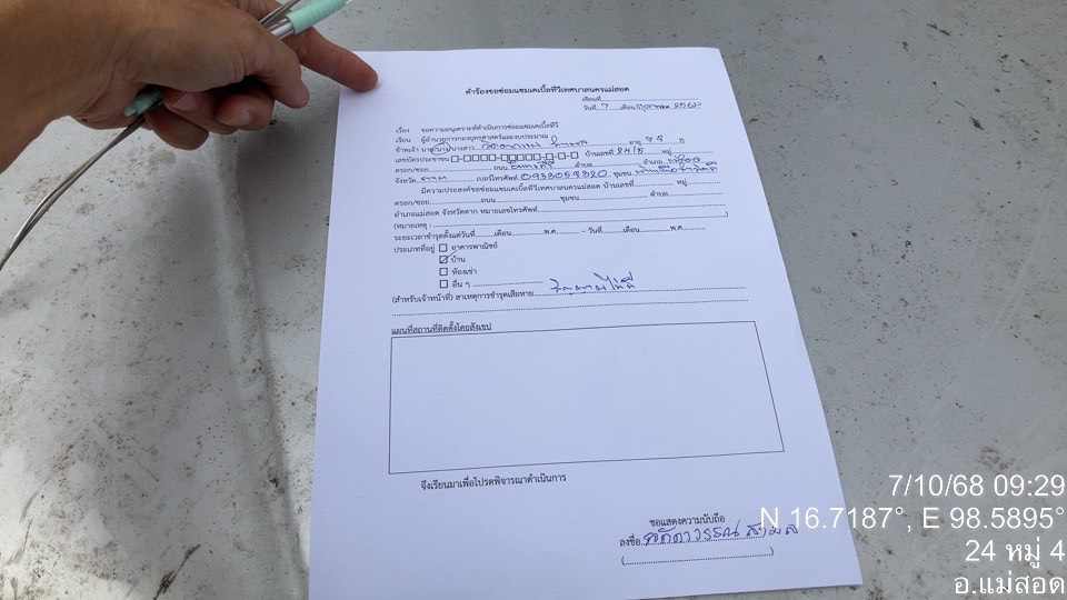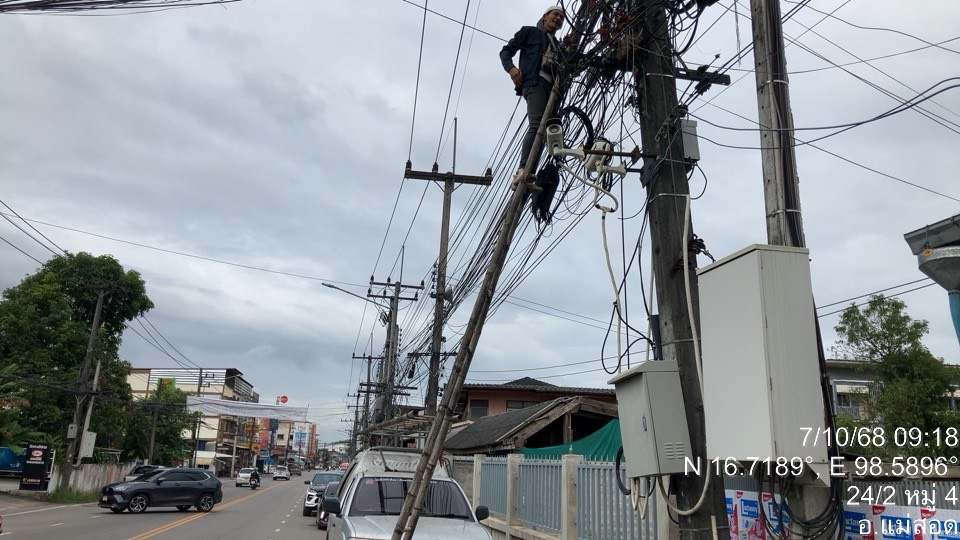 เมื่อวันอังคาร ที่ 7 ตุลาคม 2568 เวลา 09.30 น. ณ ชุมชนบ้านเหนือสามัคคี เทศบาลนครแม่สอด อำเภอแม่สอด จังหวัดตาก ว่าที่พันตรี ดร.ไพฑูรย์ ปริญญาธรรมกุล ผู้อำนวยการกองยุทธศาสตร์และงบประมาณ มอบหมายให้ เจ้าหน้าที่ช่างเคเบิ้ลทีวีเพื่อการศึกษา เจ้าหน้าที่ฝ่ายวิเทศสัมพันธ์ กองยุทธศาสตร์และงบประมาณ ลงพื้นที่ดำเนินการตามคำร้องขอซ่อมแซมเคเบิ้ลทีวี เพื่อการศึกษาเทศบาลนครแม่สอด ชุมชนบ้านเหนือสามัคคี เพื่อให้ประชาชนชุมชนดังกล่าวสามารถรับบริการเคเบิ้ลทีวีเพื่อการศึกษาเทศบาลนครแม่สอดได้