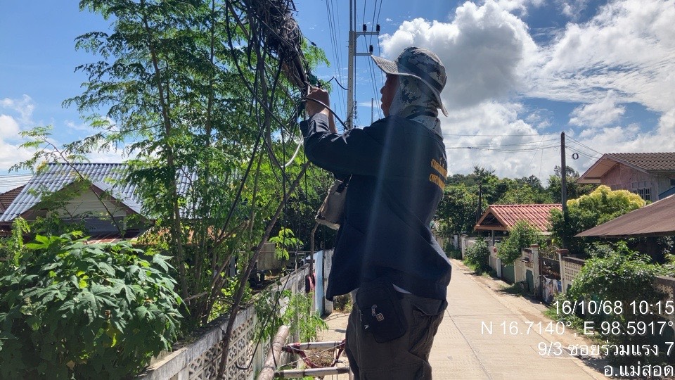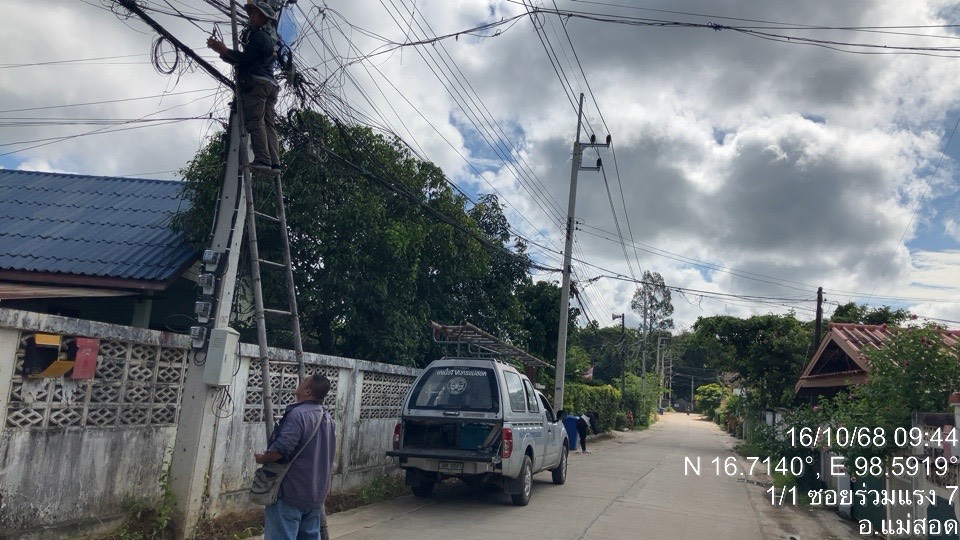 ว่าที่พันตรี ดร.ไพฑูรย์ ปริญญาธรรมกุล ผู้อำนวยการกองยุทธศาสตร์และงบประมาณ มอบหมายให้เจ้าหน้าที่ช่างเคเบิ้ลทีวีเพื่อการศึกษา เจ้าหน้าที่ฝ่ายวิเทศสัมพันธ์ กองยุทธศาสตร์และงบประมาณ ลงพื้นที่ดำเนินการตามคำร้องขอซ่อมแซมเคเบิ้ลทีวี ในเขตชุมชนร่วมแรง ซ.7 เพื่อให้ประชาชนชุมชน ดังกล่าว ได้สามารถกลับมารับชมบริการเคเบิ้ลทีวีเพื่อการศึกษาของเทศบาลนครแม่สอดได้
