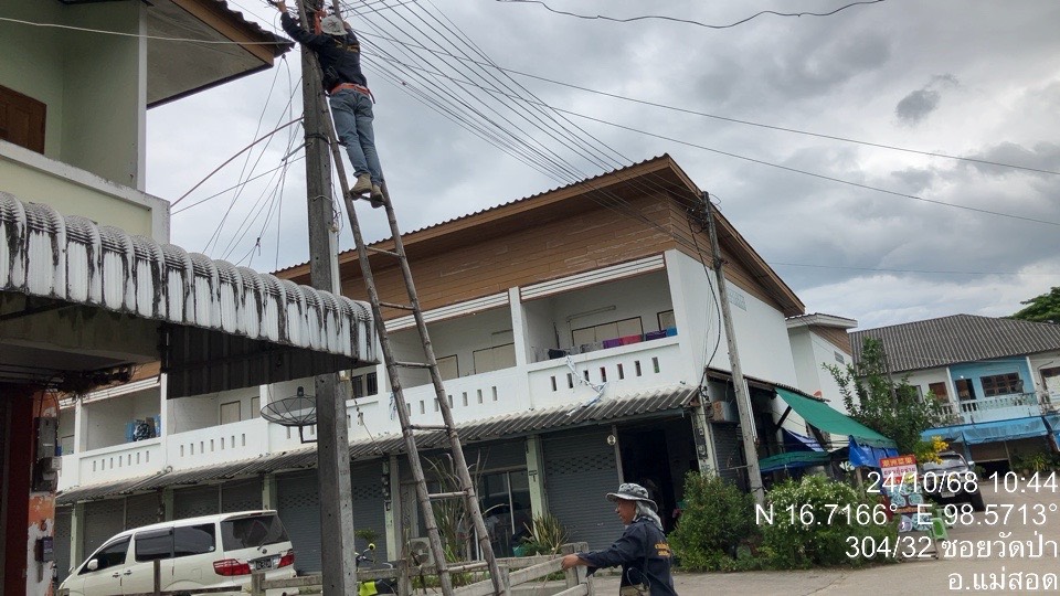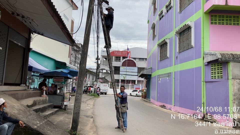 ว่าที่พันตรี ดร.ไพฑูรย์ ปริญญาธรรมกุล ผู้อำนวยการกองยุทธศาสตร์และงบประมาณ มอบหมายให้เจ้าหน้าที่ช่างเคเบิ้ลทีวีเพื่อการศึกษา เจ้าหน้าที่ฝ่ายวิเทศสัมพันธ์ กองยุทธศาสตร์และงบประมาณ ลงพื้นที่ดำเนินการตามคำร้องขอซ่อมแซมเคเบิ้ลทีวี ในเขตชุมชนจ๊อกจอ เพื่อให้ประชาชนชุมชน ดังกล่าว ได้สามารถกลับมารับชมบริการเคเบิ้ลทีวีเพื่อการศึกษาของเทศบาลนครแม่สอดได้
