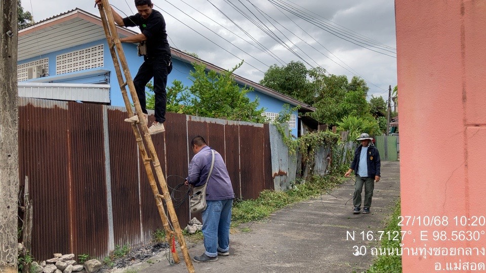 ว่าที่พันตรี ดร.ไพฑูรย์ ปริญญาธรรมกุล ผู้อำนวยการกองยุทธศาสตร์และงบประมาณ มอบหมายให้เจ้าหน้าที่ช่างเคเบิ้ลทีวีเพื่อการศึกษา เจ้าหน้าที่ฝ่ายวิเทศสัมพันธ์ กองยุทธศาสตร์และงบประมาณ ลงพื้นที่ดำเนินการตามคำร้องขอซ่อมแซมเคเบิ้ลทีวี ในเขตชุมชนปู่แดง และชุมชนบ้านทุ่ง เพื่อให้ประชาชนชุมชน ดังกล่าว ได้สามารถกลับมารับชมบริการเคเบิ้ลทีวีเพื่อการศึกษาของเทศบาลนครแม่สอดได้