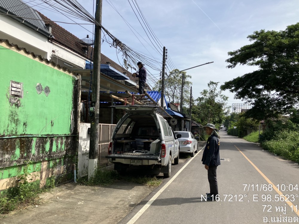 ว่าที่พันตรี ดร.ไพฑูรย์ ปริญญาธรรมกุล ผู้อำนวยการกองยุทธศาสตร์และงบประมาณ มอบหมายให้เจ้าหน้าที่ช่างเคเบิ้ลทีวีเพื่อการศึกษา เจ้าหน้าที่ฝ่ายวิเทศสัมพันธ์ กองยุทธศาสตร์และงบประมาณ ลงพื้นที่ดำเนินการตามคำร้องขอซ่อมแซมเคเบิ้ลทีวีในเขตชุมชนตาลเดี่ยว เพื่อให้ประชาชนในชุมชนดังกล่าวสามารถกลับมารับชมบริการเคเบิ้ลทีวีเพื่อการศึกษาของเทศบาลนครแม่สอดได้ตามปกติ