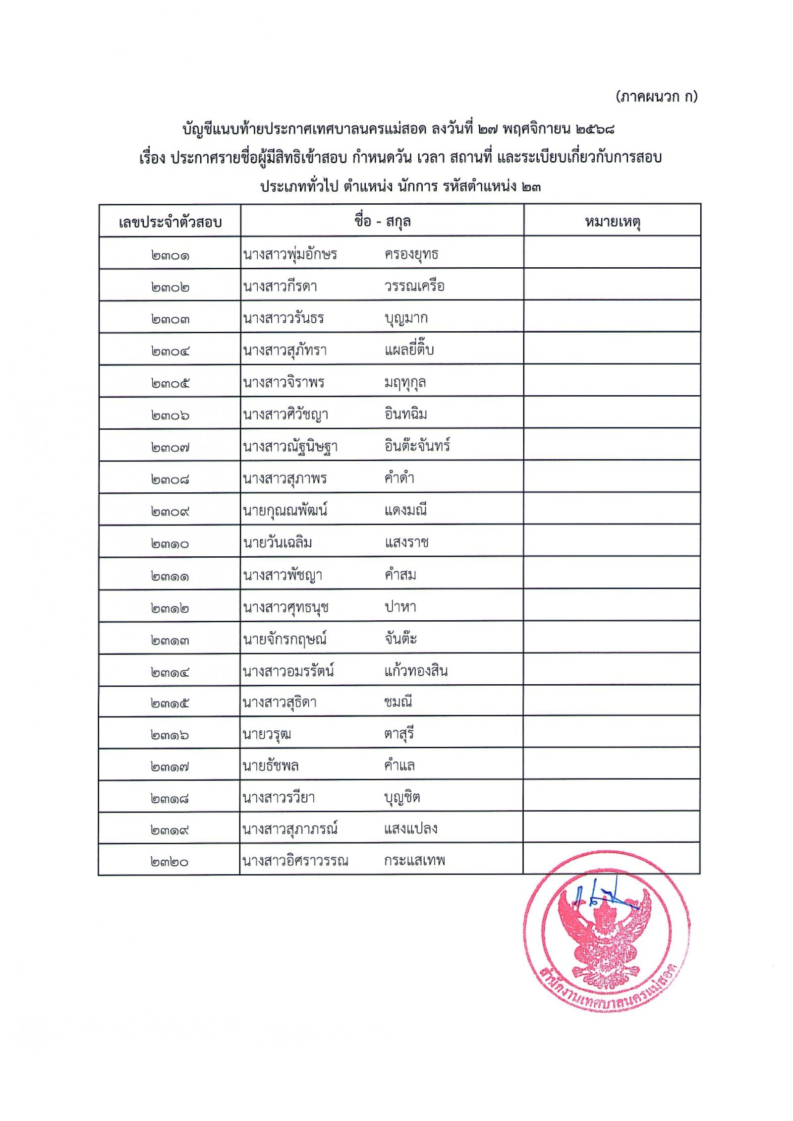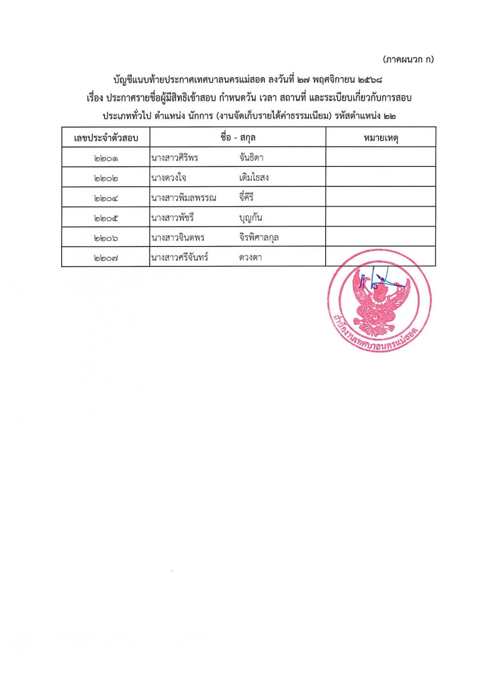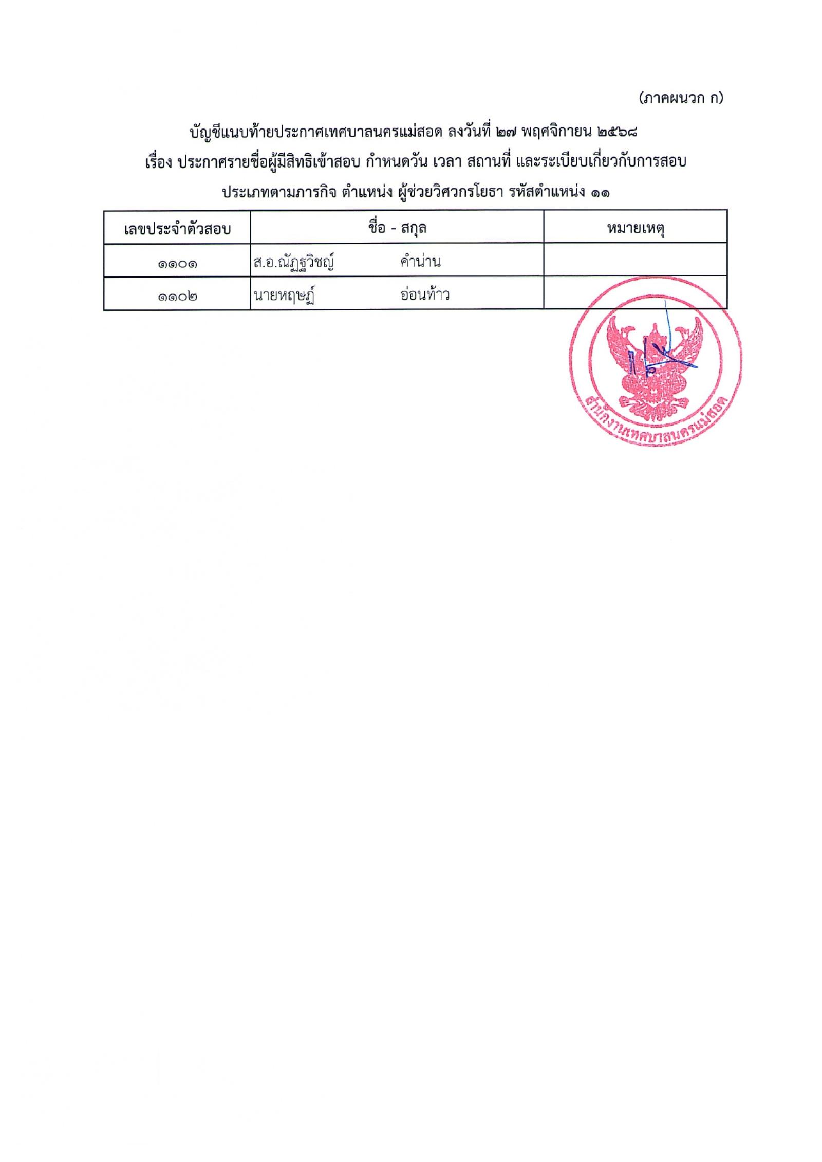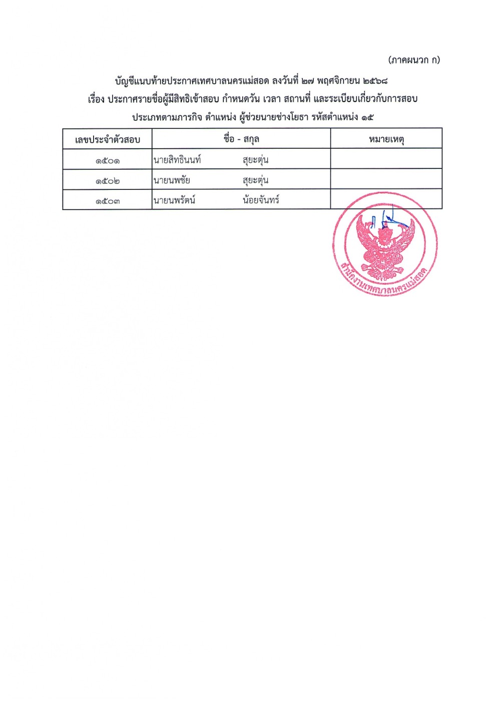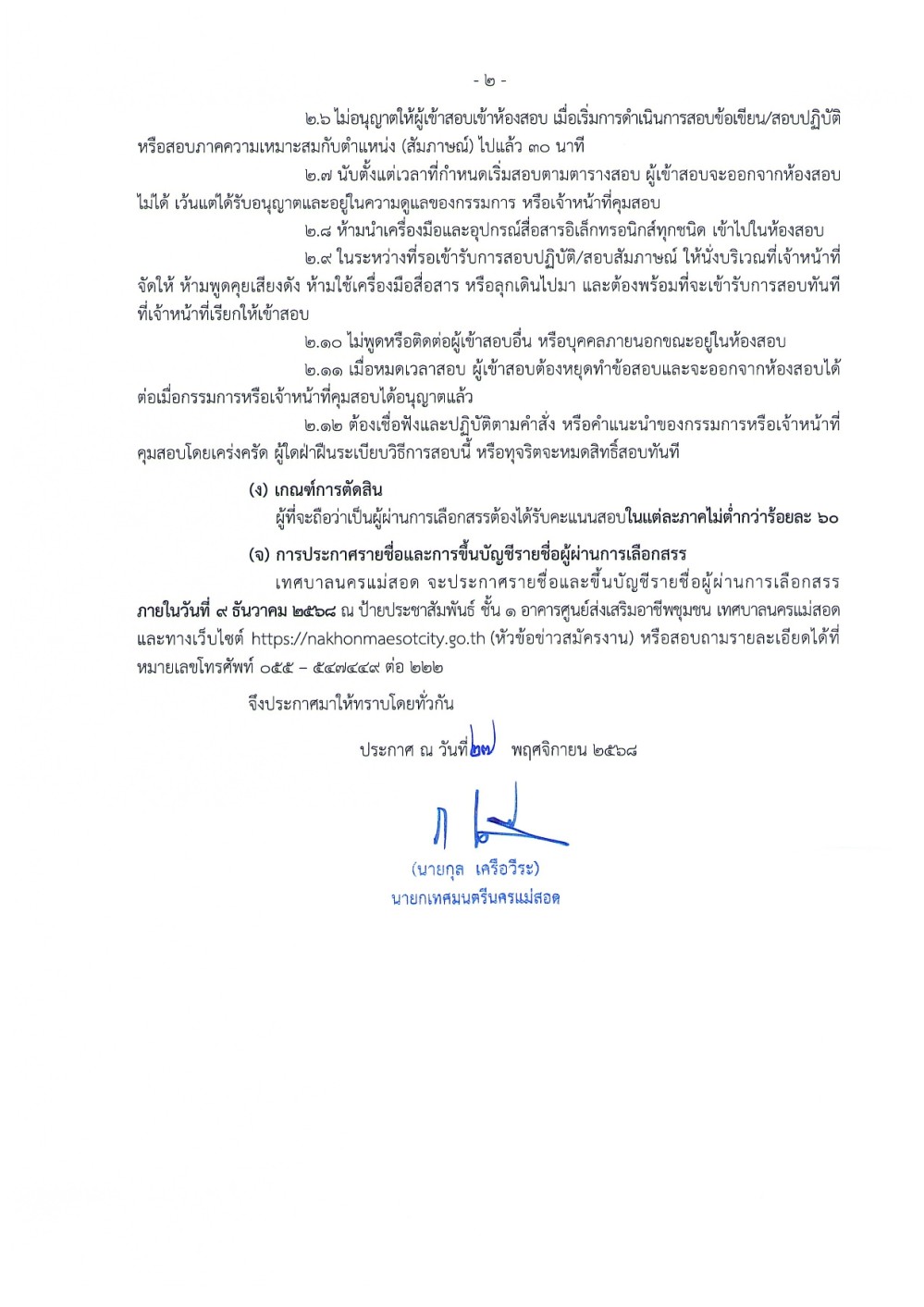 ประกาศเทศบาลนครแม่สอด เรื่อง ประกาศรายชื่อผู้มีสิทธิเข้าสอบ กำหนดวัน เวลา สถานที่ และระเบียบเกี่ยวกับการสอบ