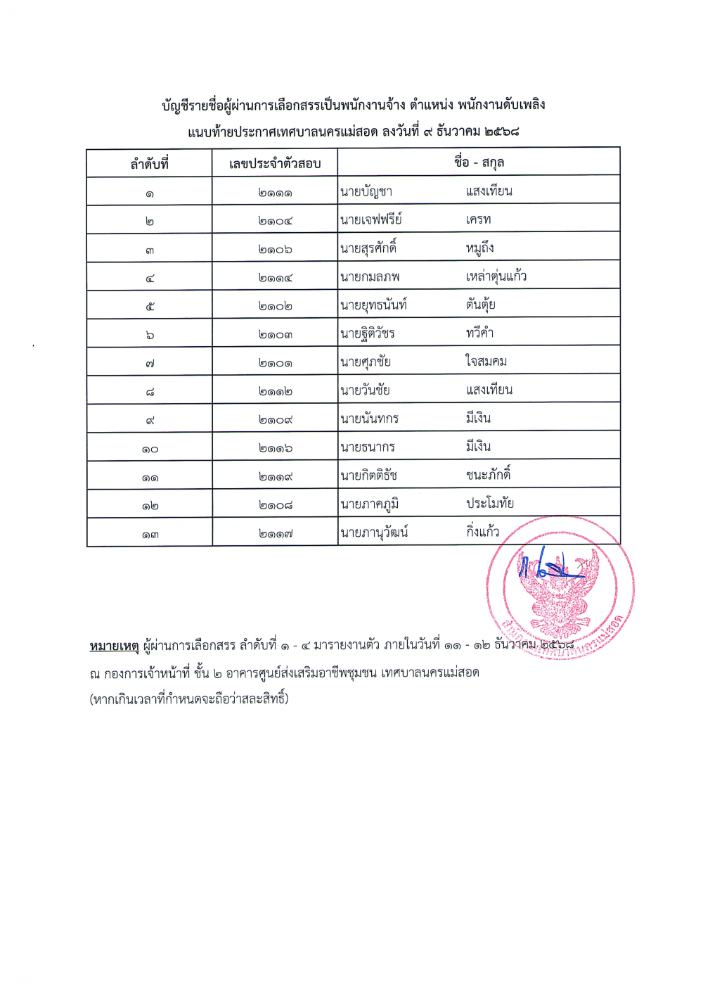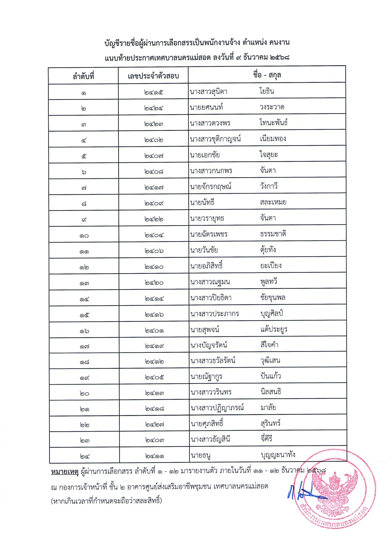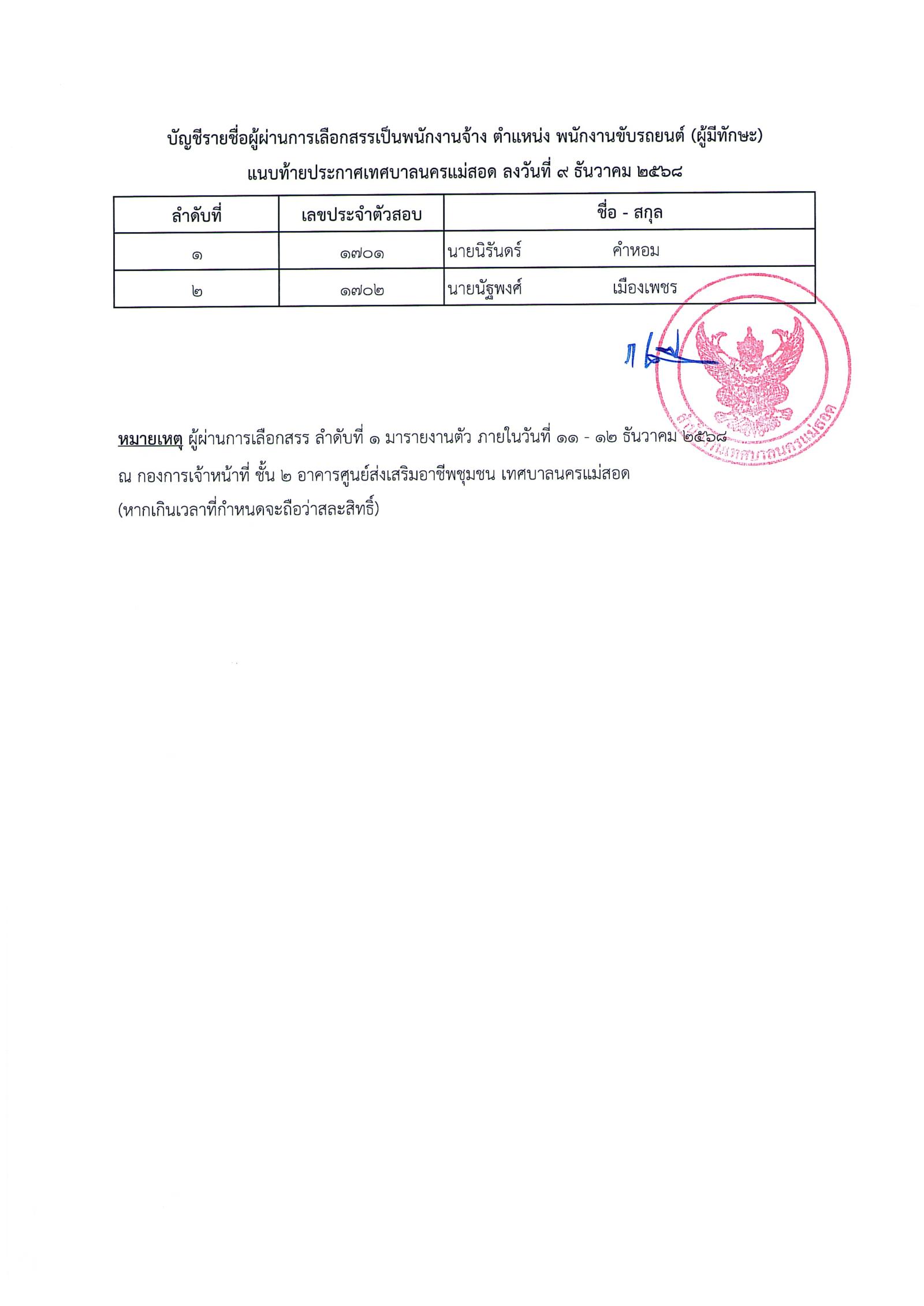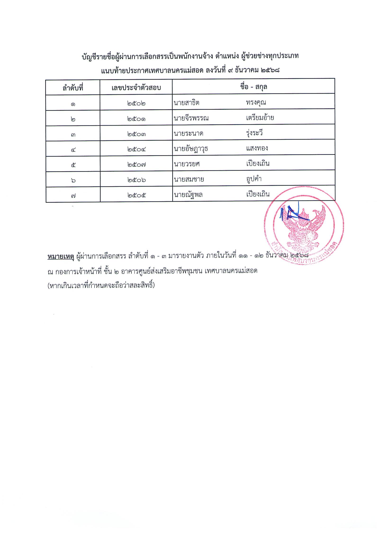 ประกาศเทศบาลนครแม่สอด เรื่อง ประกาศบัญชีรายชื่อและการขึ้นบัญชีผู้ผ่านการเลือกสรรเป็นพนักงานจ้าง.pdf