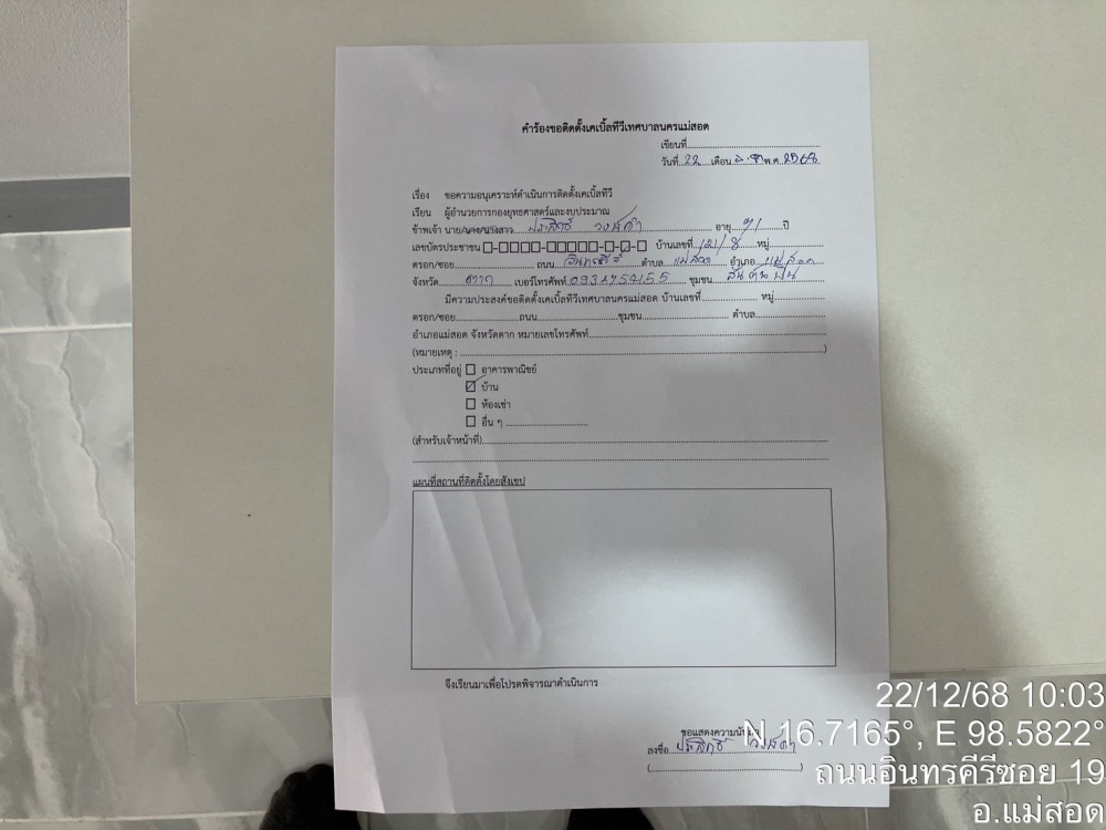 เจ้าหน้าที่กองยุทธศาสตร์และงบประมาณ ดำเนินการตามคำร้องขอติดตั้งเคเบิ้ลทีวี ชุมชนสันต้นปิน