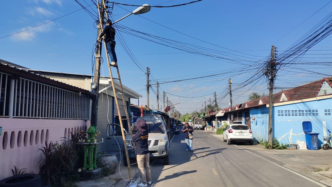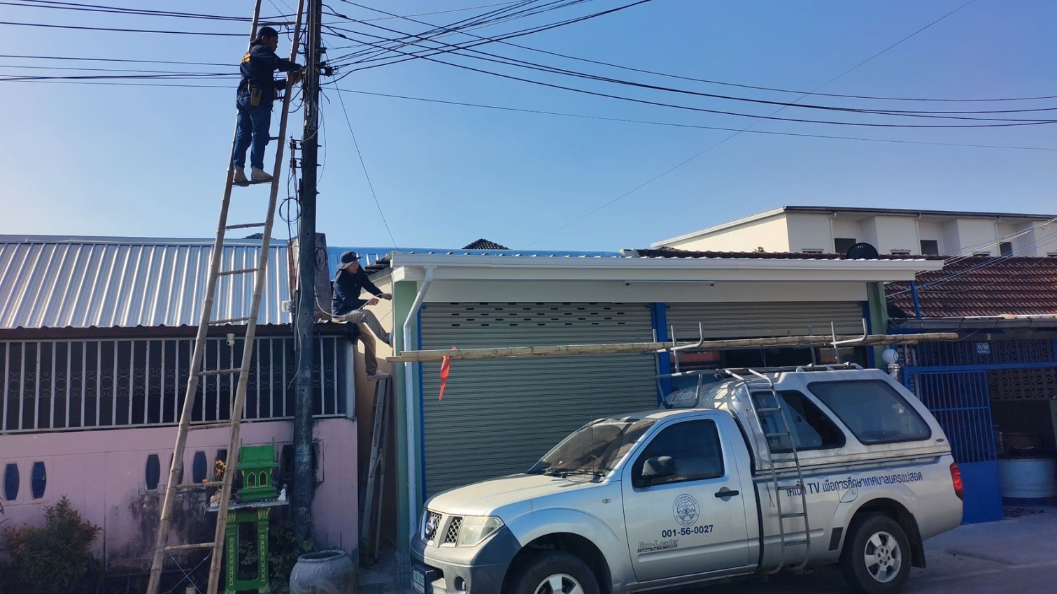 เจ้าหน้าที่กองยุทธศาสตร์และงบประมาณ ดำเนินการตามคำร้องขอซ่อมแซมเคเบิ้ลทีวี ชุมชนบ้านเหนือสามัคคี