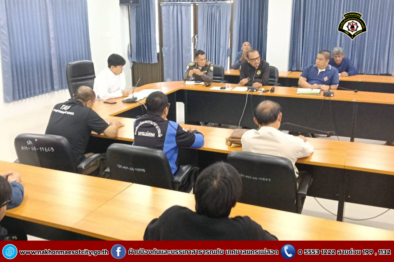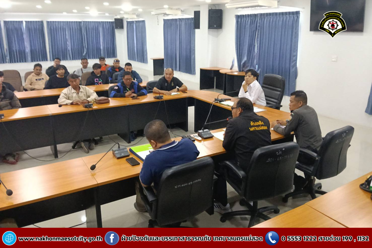 ดับเพลิงนครแม่สอด เข้าร่วมการประชุมฯ เตรียมความพร้อมรับสถานการณ์อุทกภัยในห้วงฤดูฝน และติดตามการฝึกฯ ปี 2568