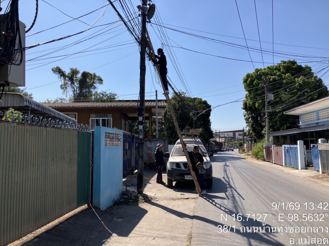 เจ้าหน้าที่กองยุทธศาสตร์และงบประมาณ ดำเนินการตามคำร้องขอซ่อมแซมเคเบิ้ลทีวี ชุมชนบ้านทุ่ง