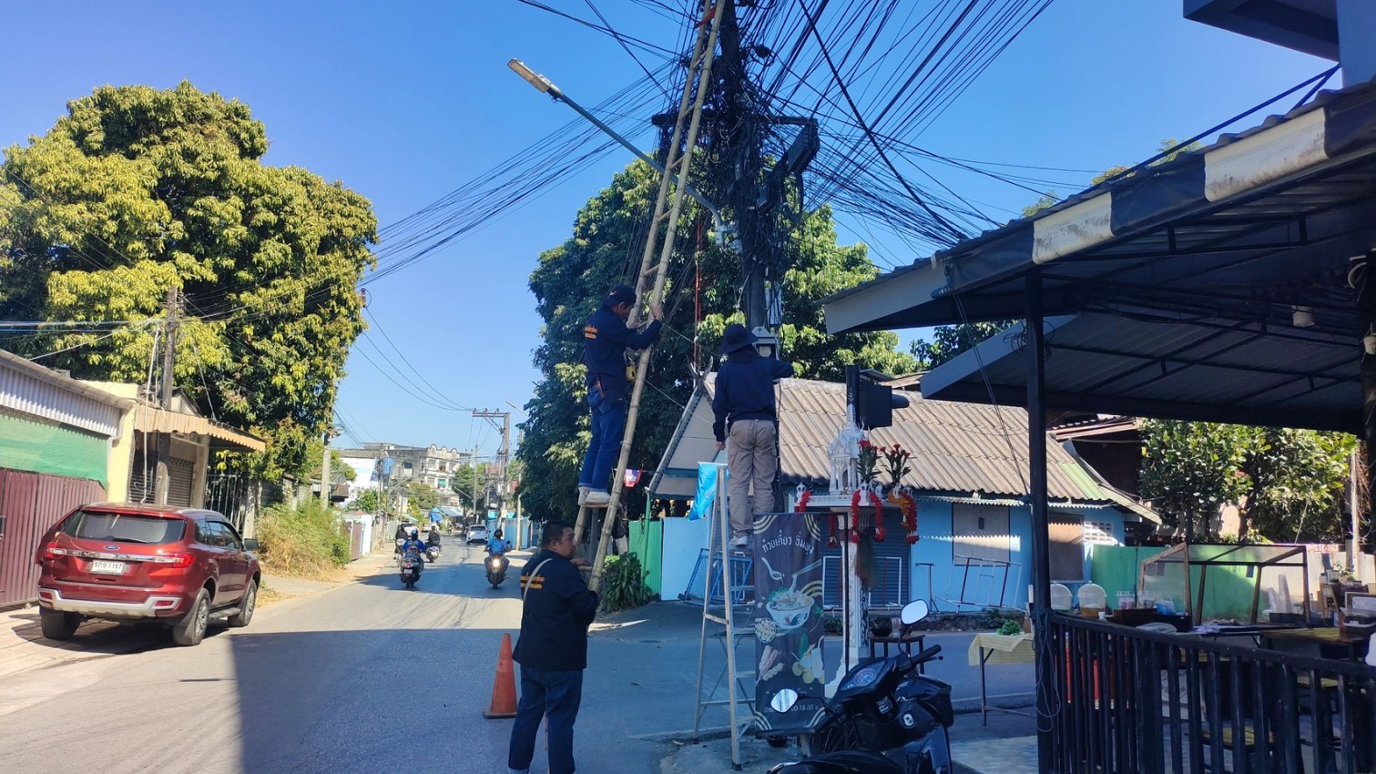 เจ้าหน้าที่กองยุทธศาสตร์และงบประมาณ ดำเนินการตามคำร้องขอซ่อมแซมเคเบิ้ลทีวี ชุมชนดอนไชย และชุมชนร่วมแรง