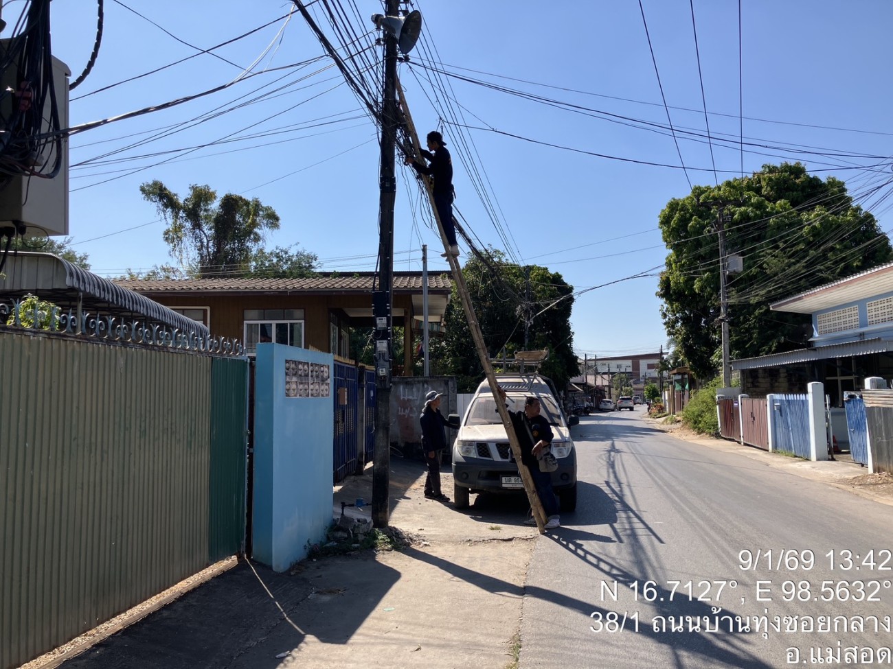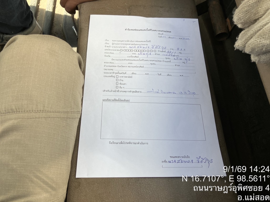 เจ้าหน้าที่กองยุทธศาสตร์และงบประมาณ ดำเนินการตามคำร้องขอซ่อมแซมเคเบิ้ลทีวี ชุมชนบ้านเหนือสามัคคี