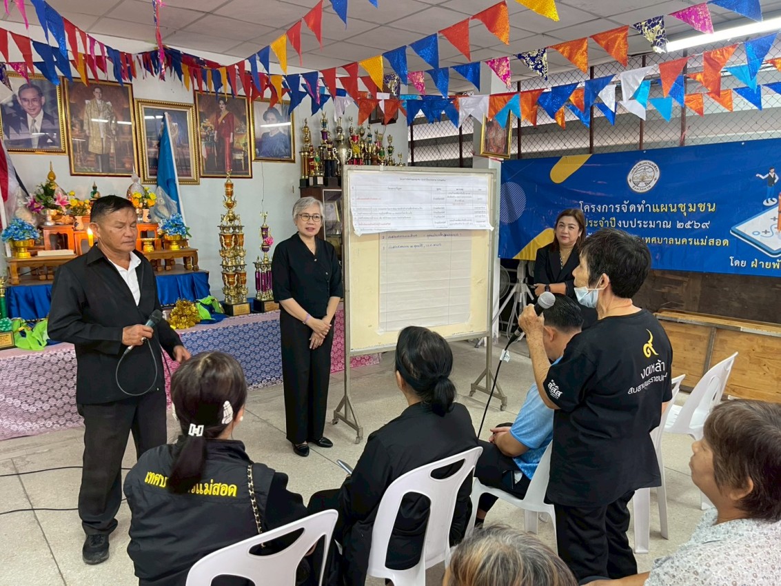 วันที่ 12 ธันวาคม พ.ศ.2568 นายสุมิตร กัญจะนะ ผู้อำนวยการกองสวัสดิการสังคม พร้อมกับเจ้าหน้าที่ฝ่ายพัฒนาชุมชน กองสวัสดิการสังคม ร่วมกับกองยุทธศาสตร์และงบประมาณ เทศบาลนครแม่สอด จัดทำโครงการจัดทำแผนชุมชน ปีงบประมาณ 2569 ของชุมชนบ้านเหนือสามัคคี ณ ที่ทำการชุมชนบ้านเหนือสามัคคี เพื่อรับฟังปัญหาความต้องการของประชาชน และนำบรรจุเข้าแผนชุมชนต่อไป
